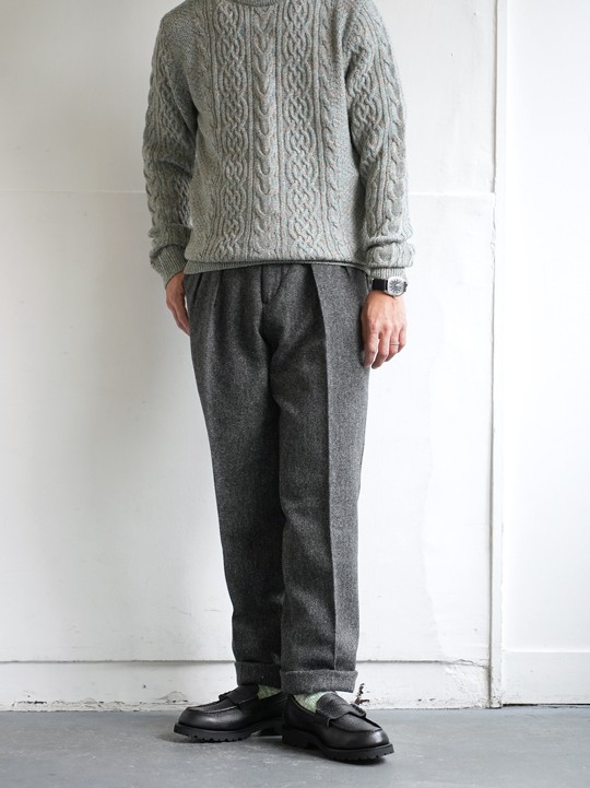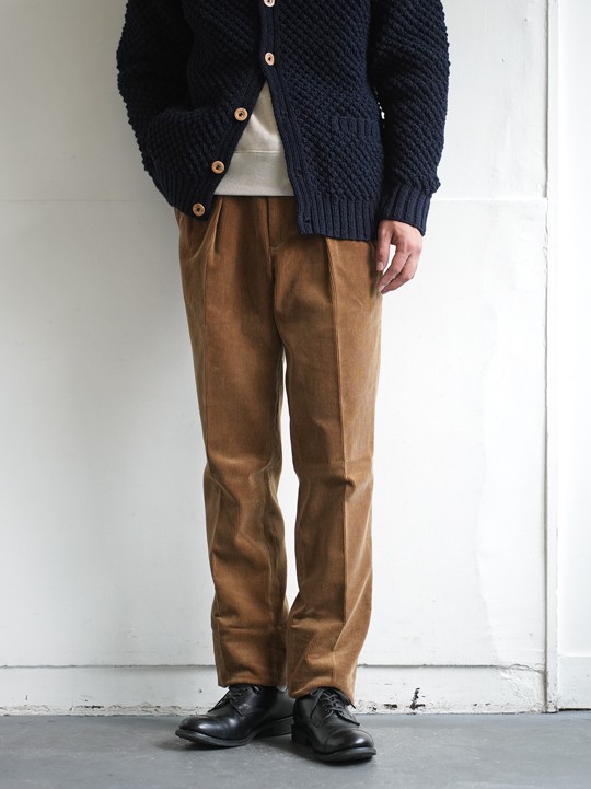 ともにサイズが限られてきましたツイードとコーデュロイのマッカーサー。今一番穿きたいのはこれではないでしょうか。マッカーサーは2タックフロントにウォッチポケットなどのクラシカルなディテール、やや太めにテーパードを効かせたブランドを代表するモデルです。