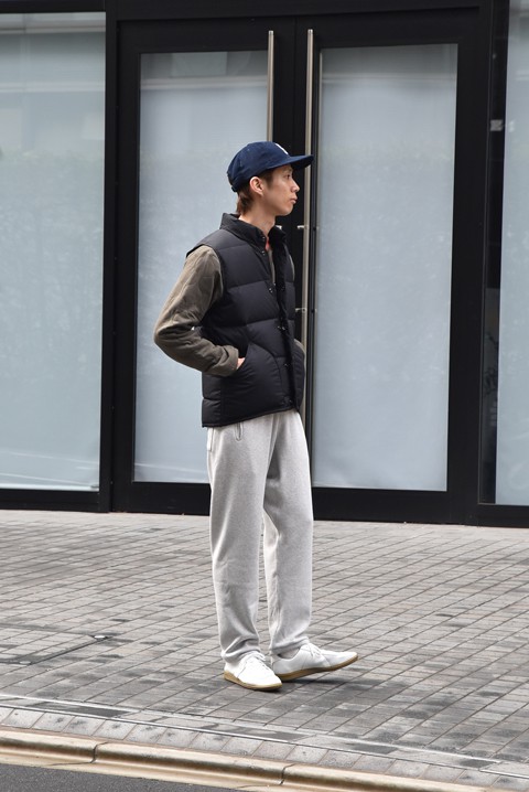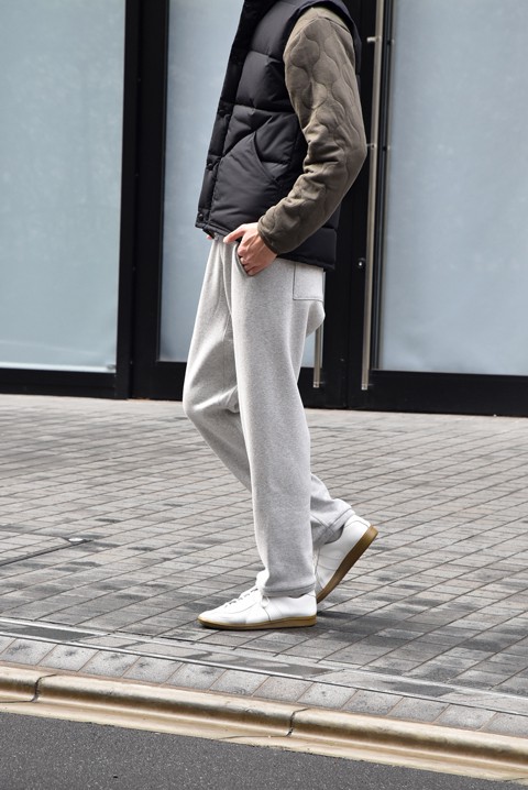 スウェットパンツに分類されるアイテムですが、粗野な感じにはならずどこか上品な印象に。