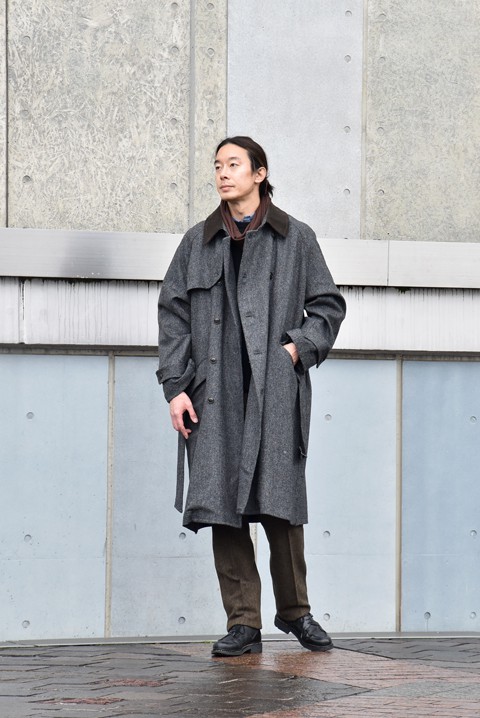 トレンチコートには珍しいイタリア製のツイード生地を使用しており、単調ではない深みのある豊かな色合いとハード過ぎない優しい印象を醸し出します。