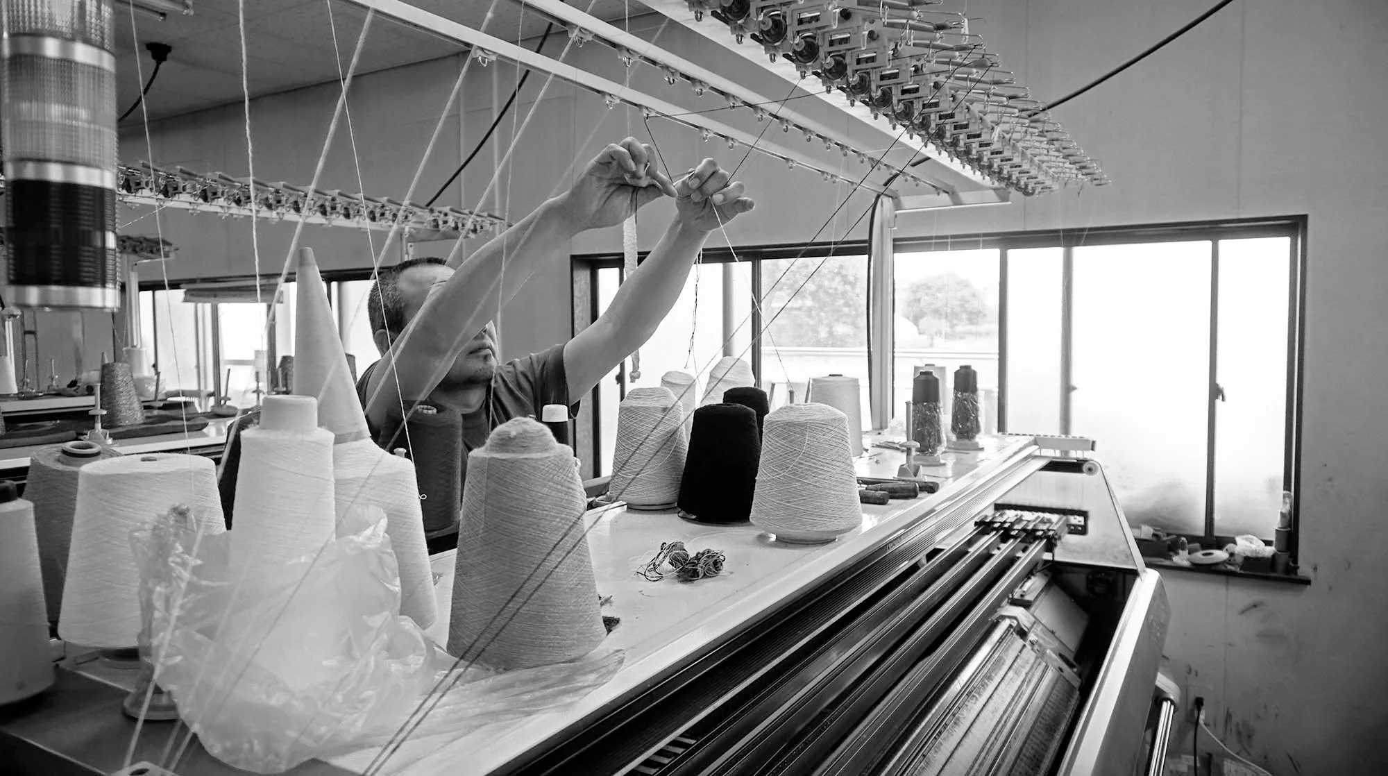 もちろん簡単なことではありませんので、通常の3倍以上の時間をかけ編むことで、快適な着心地と洗濯に耐えれるタフさを併せ持つ編地へとなっているのです。