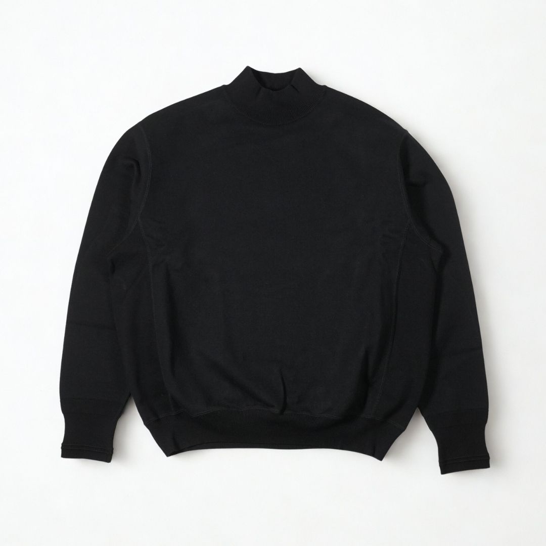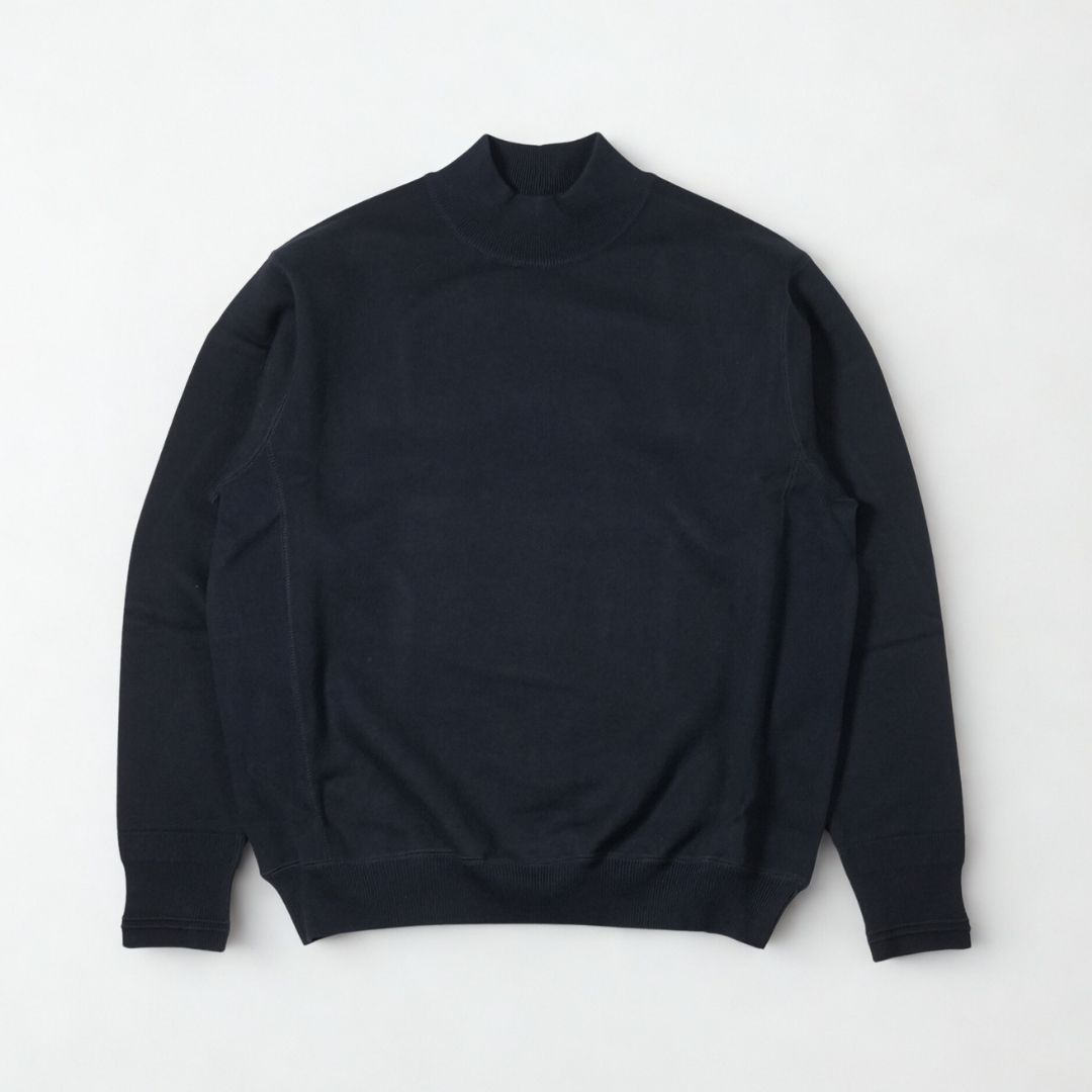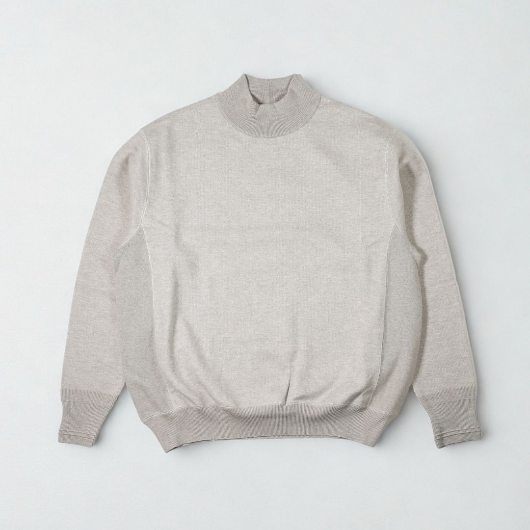 クルーネックよりもどこかスマートで上品に映り、ジャケットなどアウターと重ねたときにも良いアクセントとなるモックネックデザイン。ネックの高さはほどほどに詰まりすぎずで首のラインに綺麗に沿ってくれます。