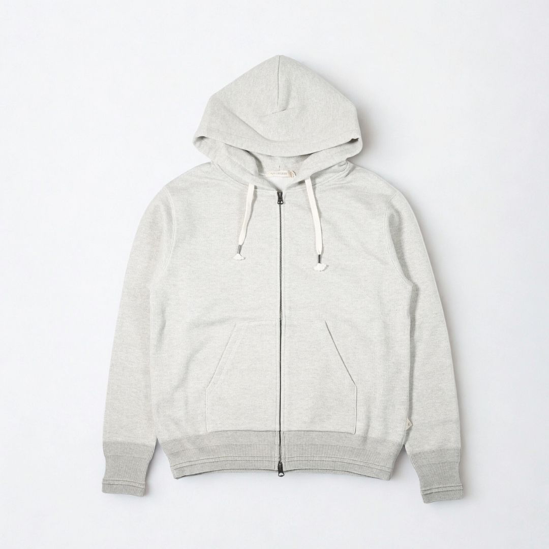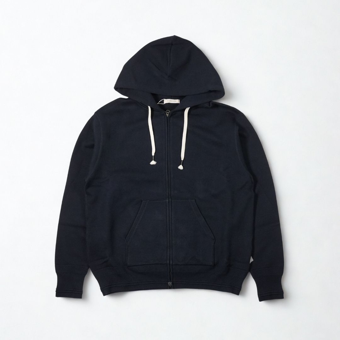 アウター・インナーの両方でお楽しみいただけるジップアップパーカーデザイン。