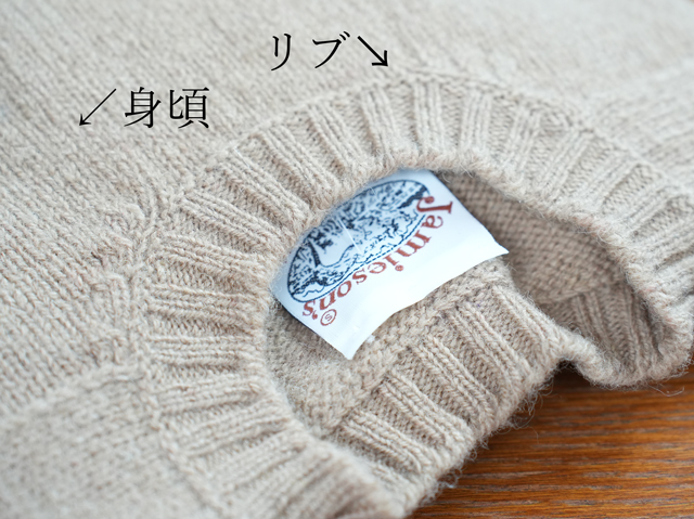対して、Jamieson’sは身頃とリブパーツが分けて作られます。