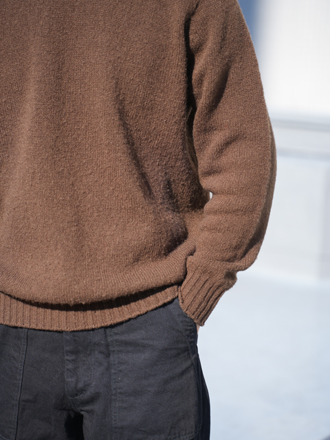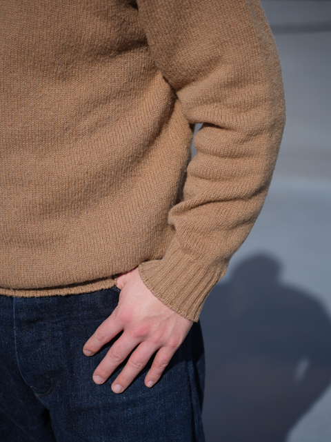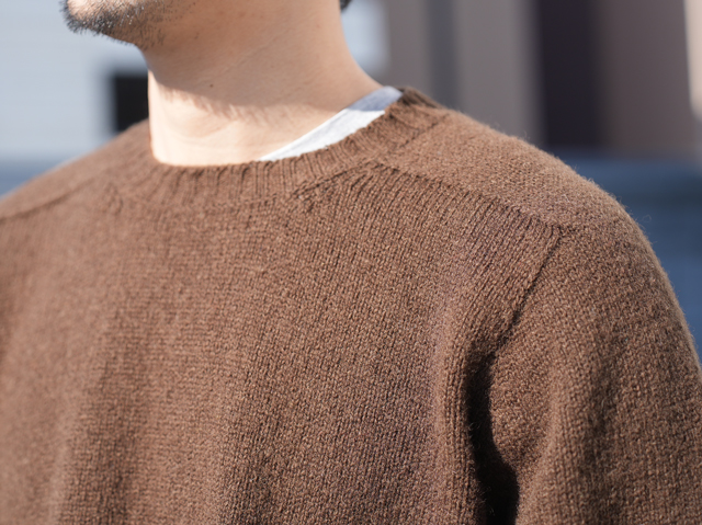 そんなジャミーソンズが研究を重ね、ようやくシェトランドウールを紡績、加工を施し、リアルシェトランドウールを100%使用したセーターを完成させたのが、今回ご紹介するL/S CREW PULLOVER。