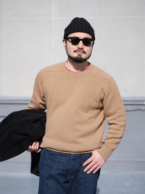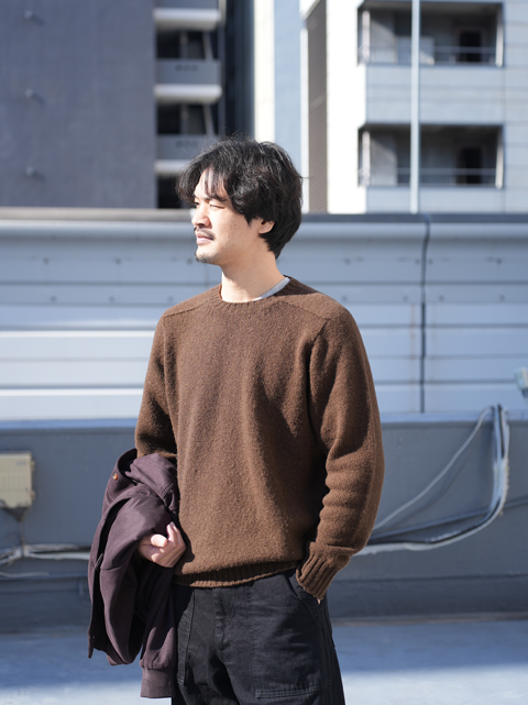 「シェットランドセーターはとにかく暖かくて発色も綺麗。ブランド問わず色々着てみましたが、ジャミーソンズのは厚みがあって、今季は沢山着ています。」