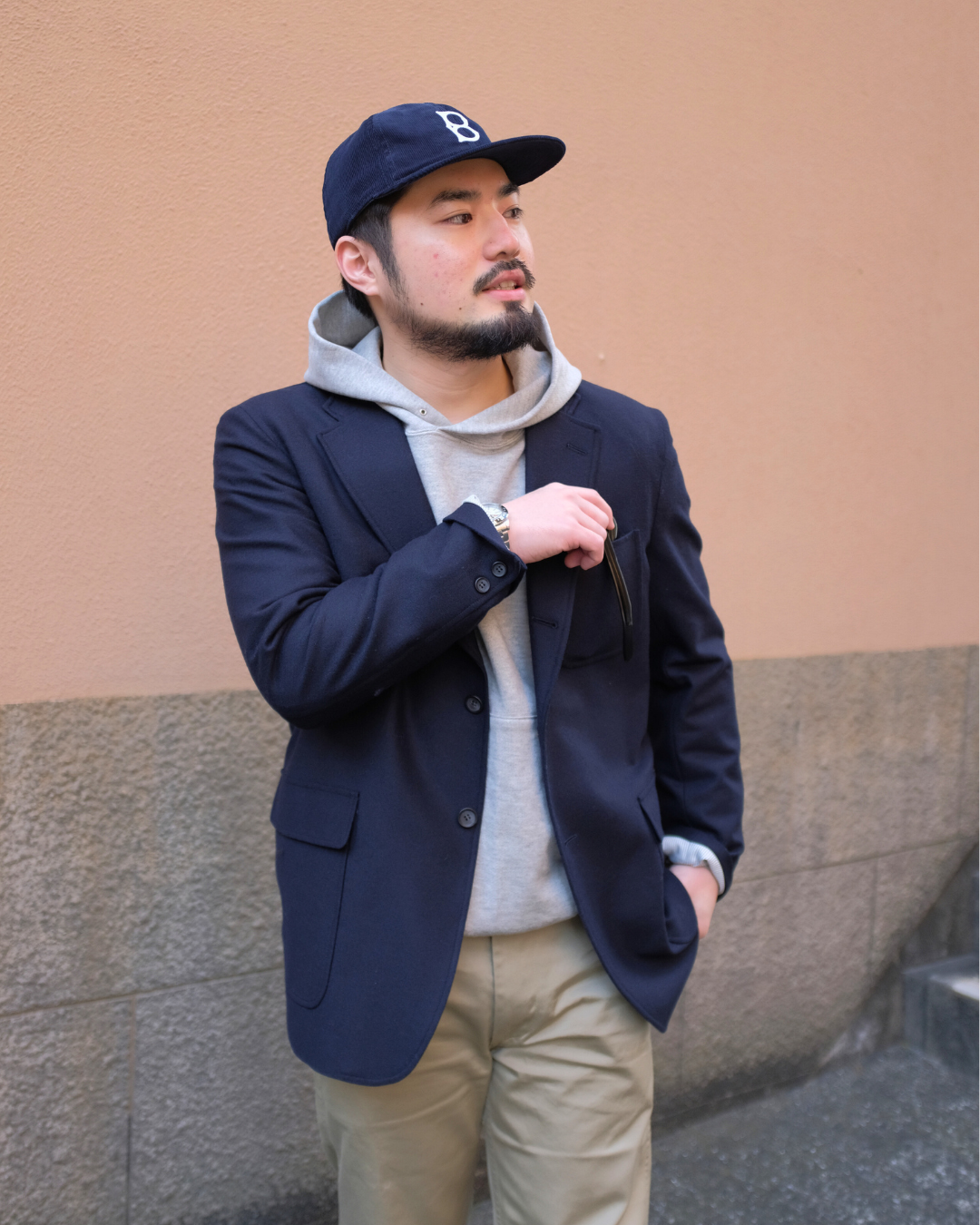 きっちりしないといけないという意識ではなく、紺ブレをまずは身近に感じてみる。