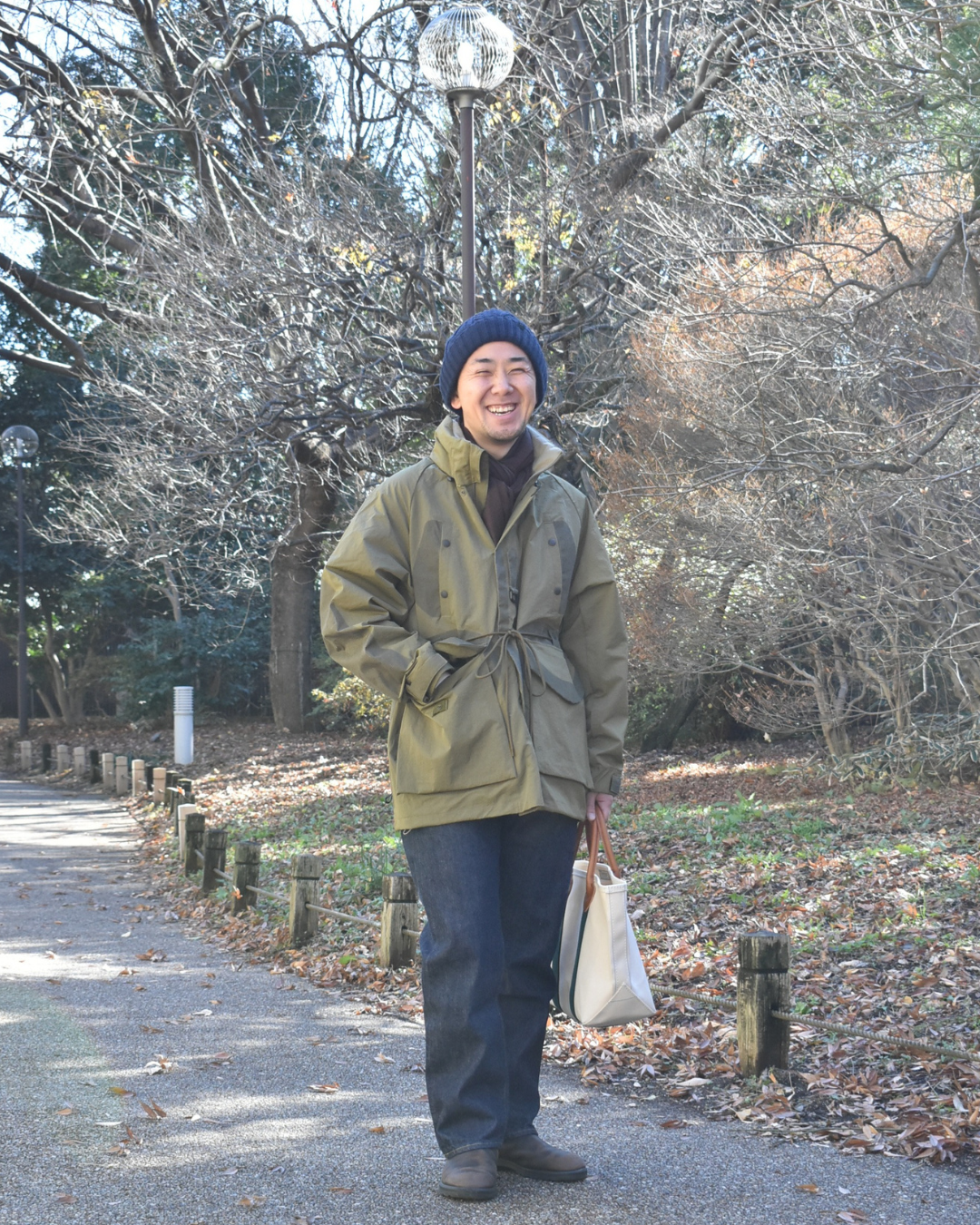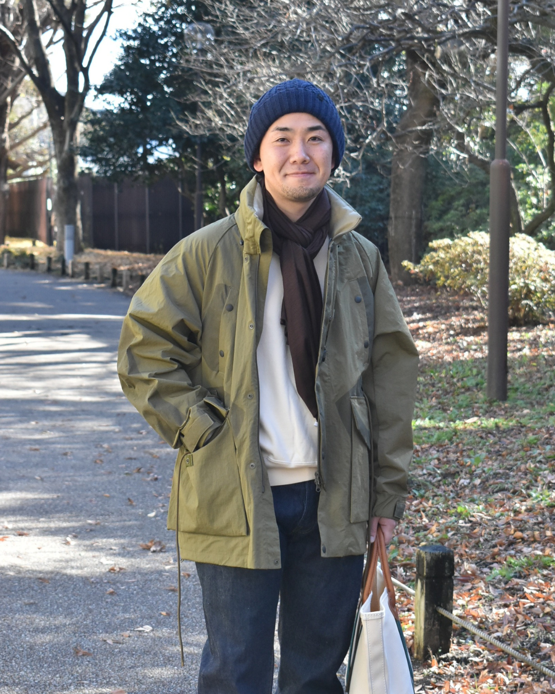 耐候性、耐久性が高いアウターですから、小物やインナーで保温性のあるものをチョイスしていただくとよろしいかと◎