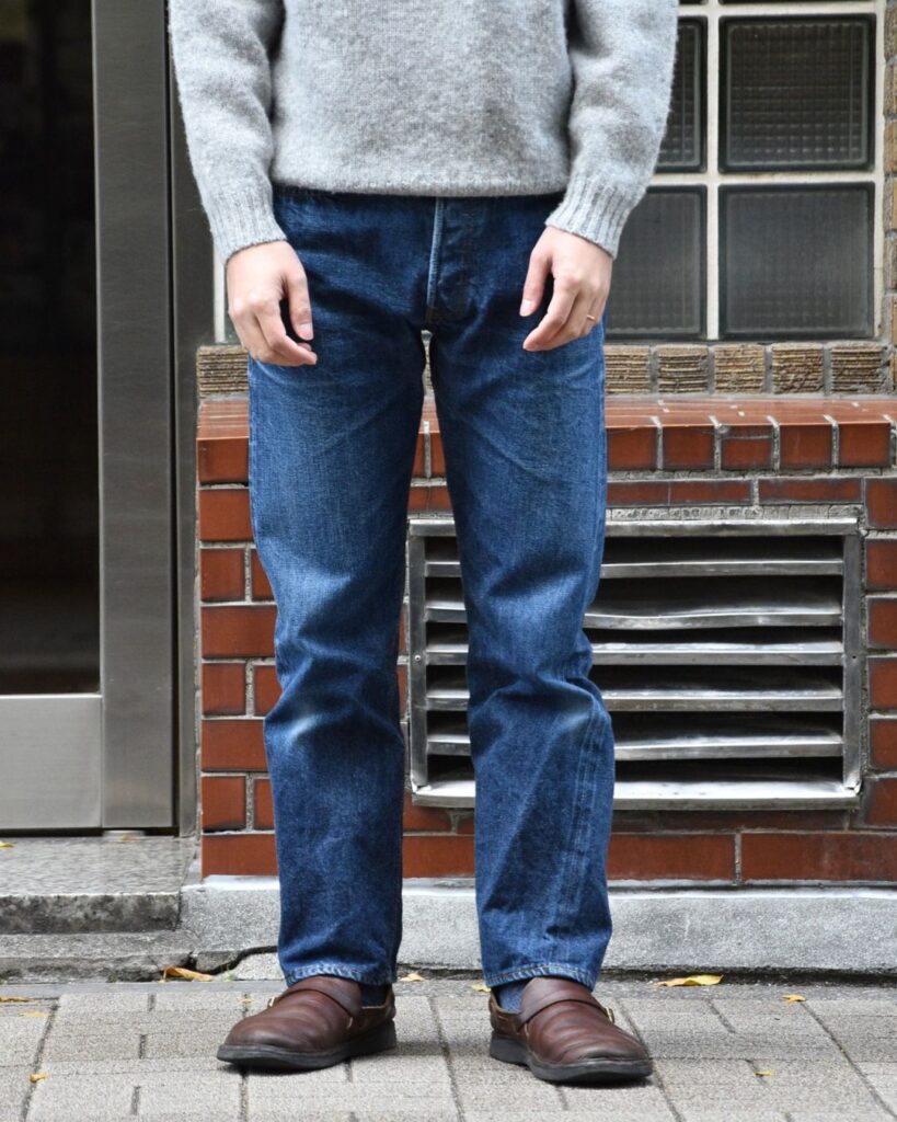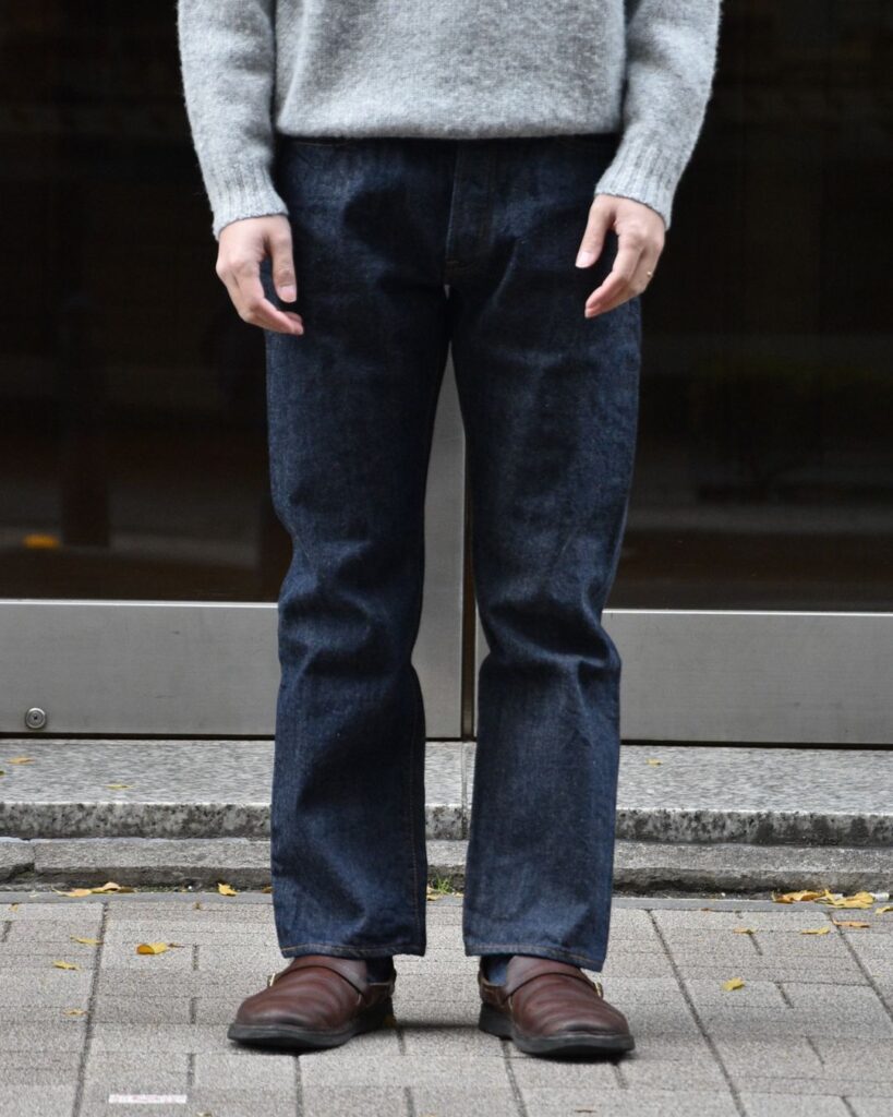 世の中の流れや、体型の変化もありここ数年でトップスのサイズバランスが少し緩くなってきつつあり、ジャストのサイズのスマートなシルエットも良いのですが、もう少し気軽に穿ける細身のジーンズをと思い購入したのがこちらの1本。