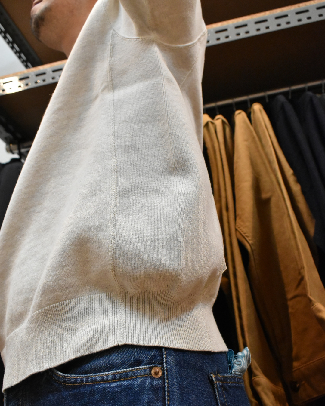 アメリカ製のヘビーウェイトのスウェットみたく、手に取ったときは重厚感を感じるスニット。