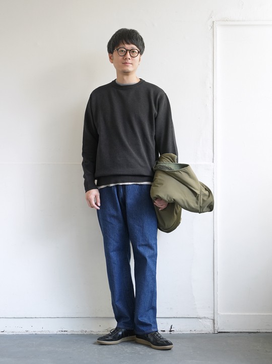 極めて高い耐久性は買い替えがほとんど必要なく、自分にとってのスタンダードになり得ますし、スウェットのように見えて実はセーターなところも、落ち着いた雰囲気が出て良い。