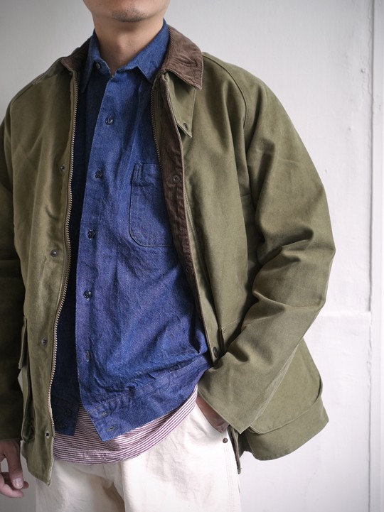 Gジャンの原型を思わせるようなアウターデザインにこの生地がえらくマッチしています。 色落ちしてきた頃も抜群に良いでしょう。