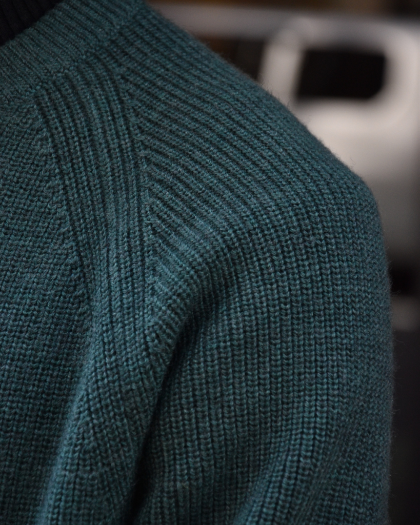 ウールとしては最高級のキャッシュウールを贅沢に2本取りで畦編みにしています。