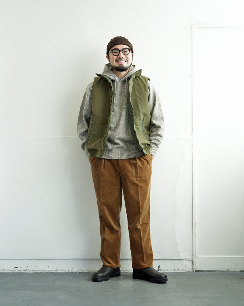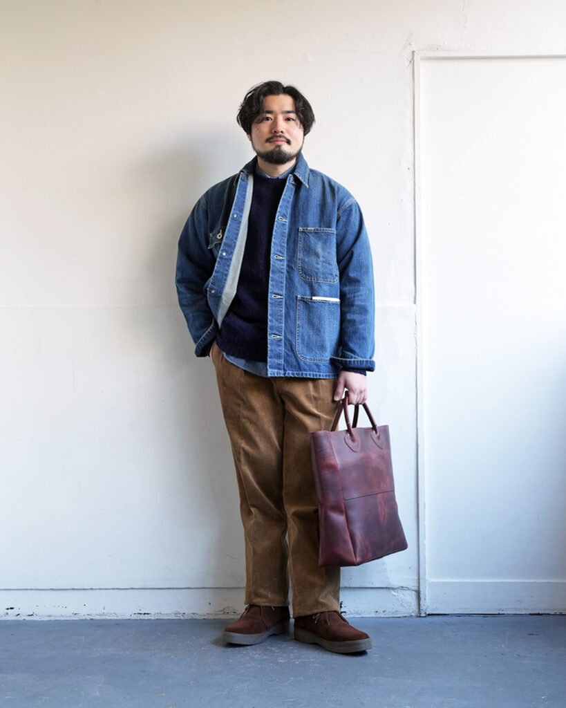 バーンストーマーのマッカーサーが持つ「武骨さ」と「品の良さ」のイメージを崩さずに季節感のある生地を考えた時にこのコーデュロイは最適解だったと思います。