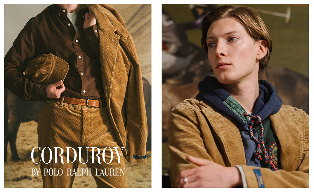 ラルフローレン(主にポロレーベル)では毎シーズン必ずといっても良い程、スタイルルックで使われているブラウンの太畝のコーデュロイ。