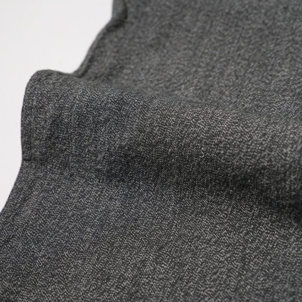 表情のあるコバート生地は杢糸(経糸に色糸と白糸を撚り合わせて1本の糸になっています)を使用することで、ブラックシャンブレーのような見た目に。