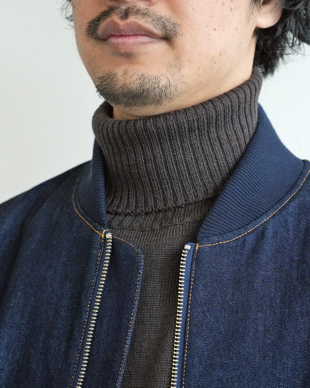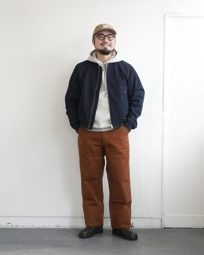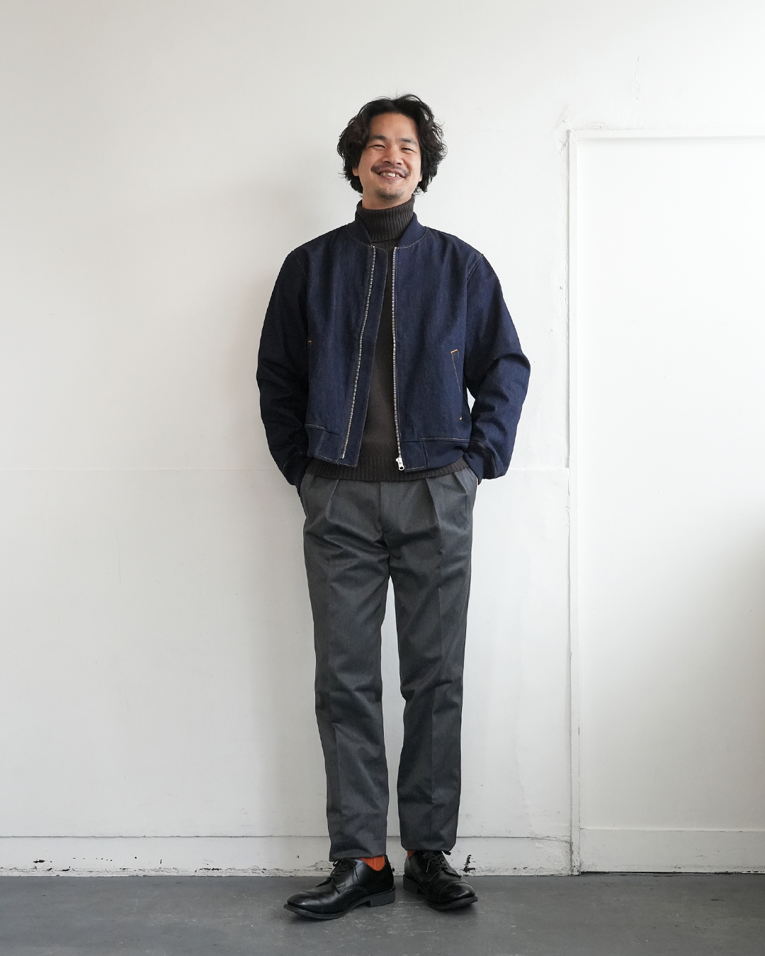 いわゆるデニムジャケットやカバーオールとは少し違い、ミリタリーのフライトジャケットをベースにブランドお得意のデニム生地で作られた1着です。