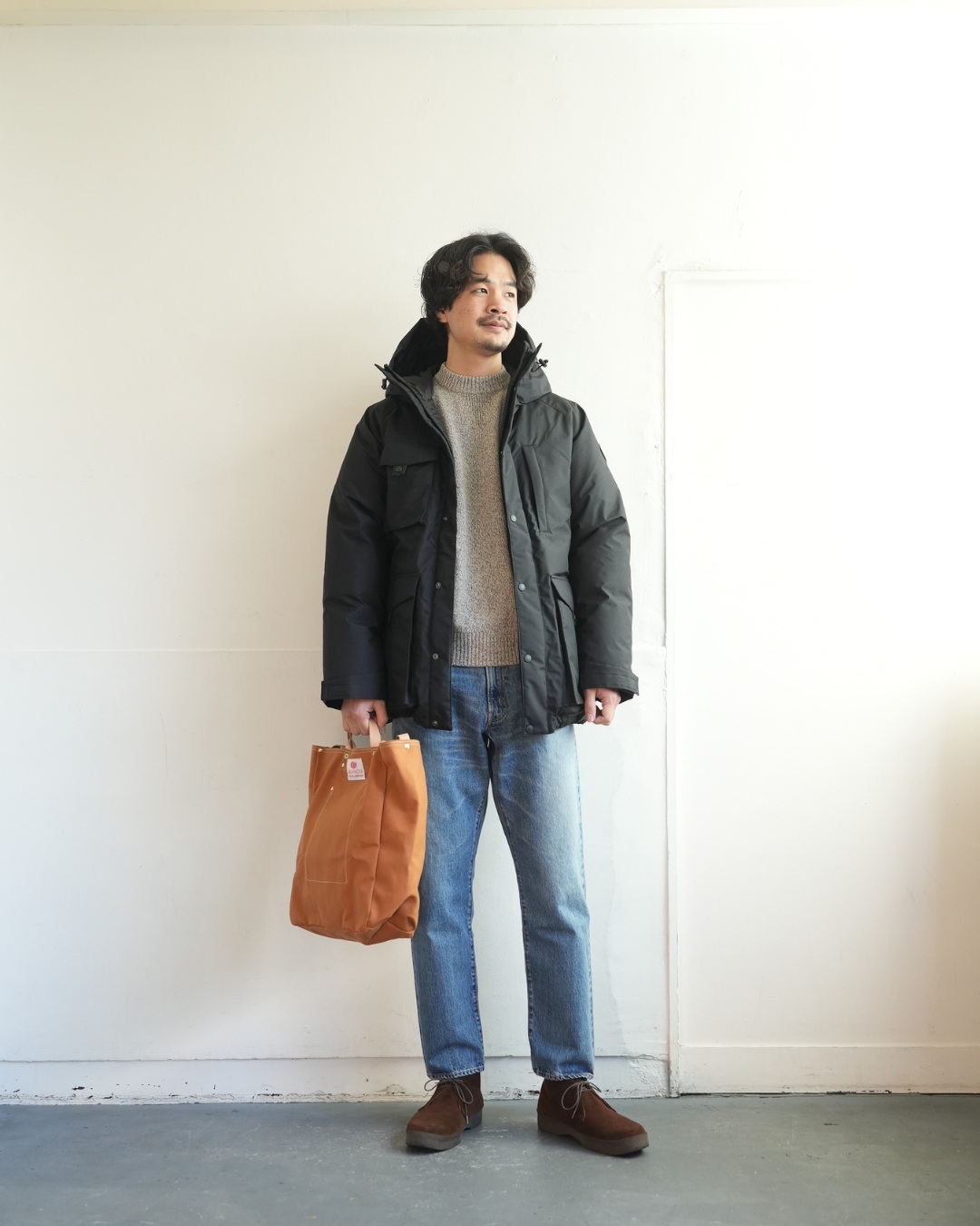 ダウンに色落ちデニムのアメカジスタイルに是非。