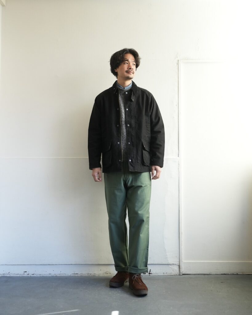 ワークジャケットなんかと合わせるとうまくコーディネートが可能です。