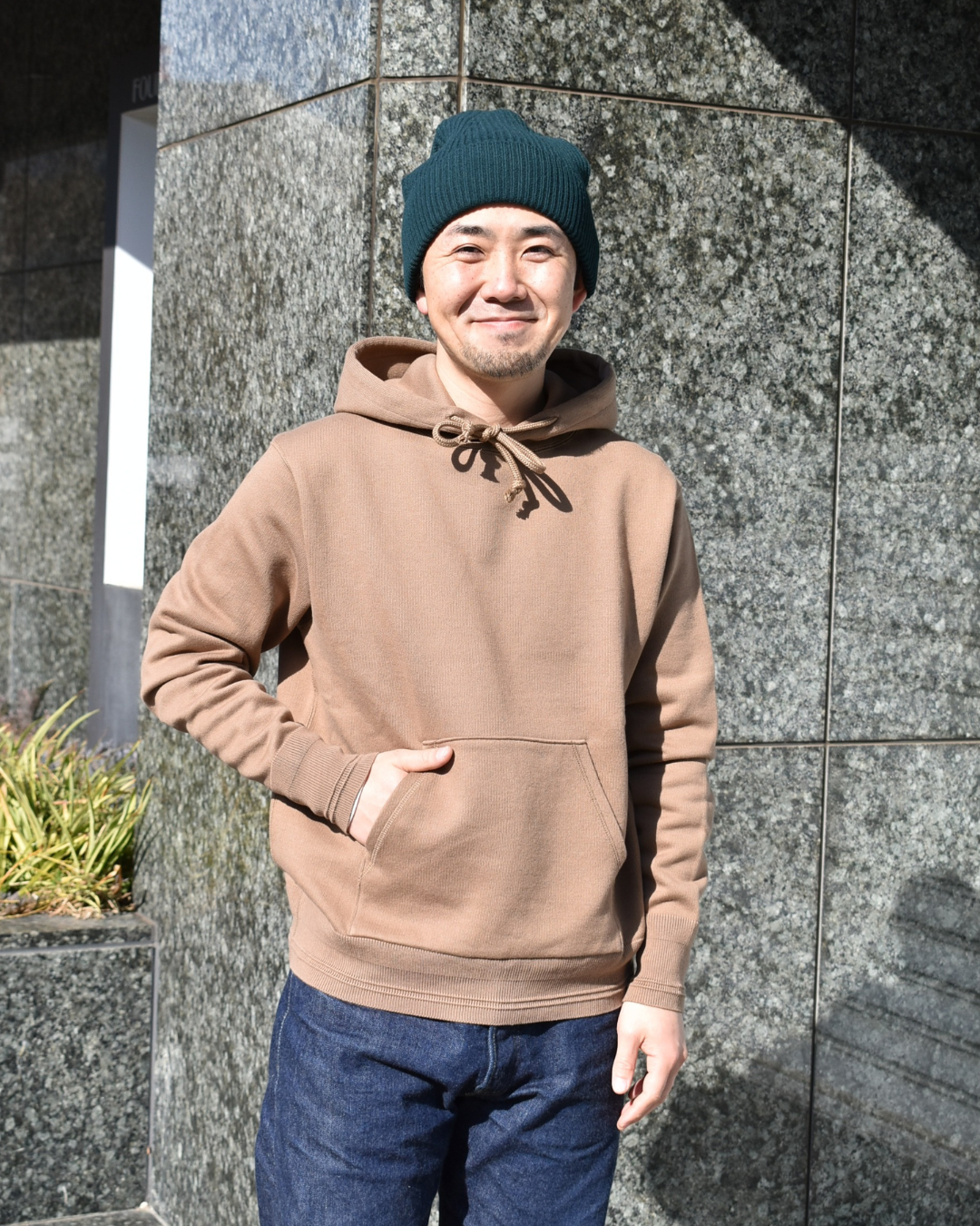スウェットではあまり見ない、キャメル。