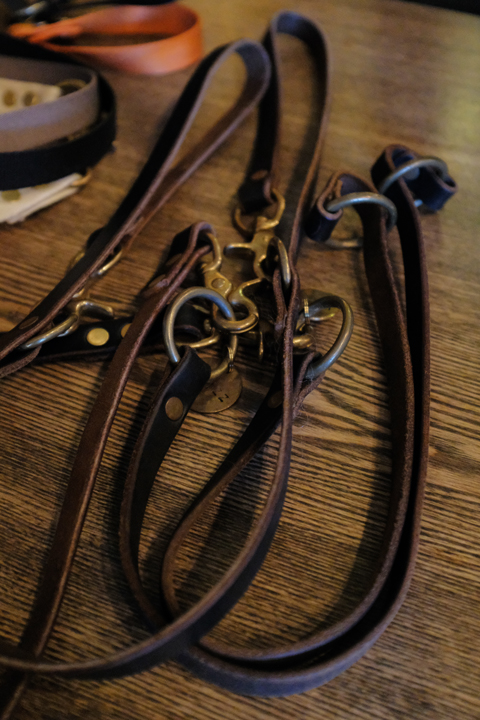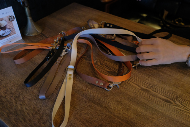 山田さん「webデザイン、ブランドディレクション、プロダクトデザイン、店舗設計など、デザインできるものは全てやります。例えば自身の犬具ブランド(点と点をつなぐもの)の犬のリード。命を繋ぐ道具としてのリードですので、使い心地(手触り)なんかも大事にしています。シルキータッチなナイロン素材を使用したり、レザーの方は、ホーウィンのクロムエクセルレザーを使用しています。」