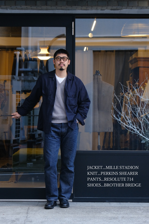 昨年の秋にZABOU銀座店で購入していただいた714。鈴木さんのライフスタイルに合わせてすこしゆったりめのサイズをチョイス。BROTHER BRIDGEの新作、JUDSONとの相性もバツグンだ。
