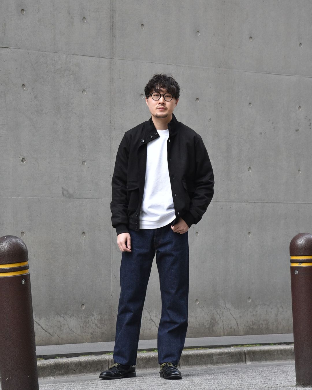 インナーにはナウンの新作MACを。着丈短めのバランスのスウェットなので、ショート丈のブルゾンとも相性良く裾も丁度に収まります。
