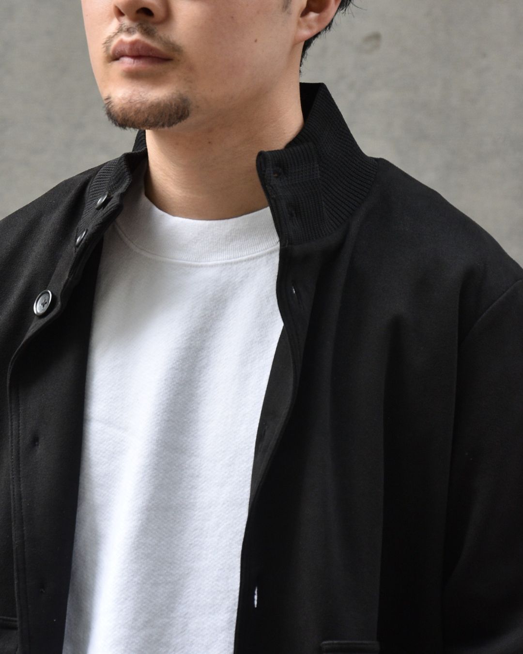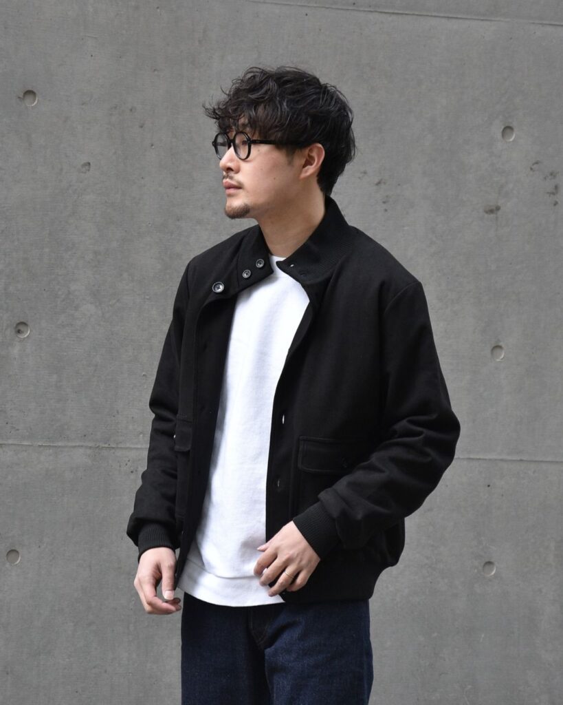 元々ニットの上から羽織れることを想定したブルゾンですので、インナー選ばず羽織れるのがポイントです。