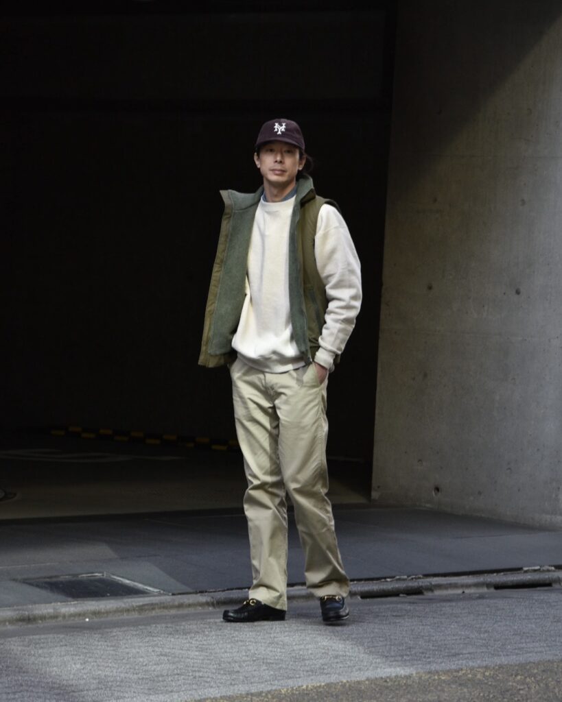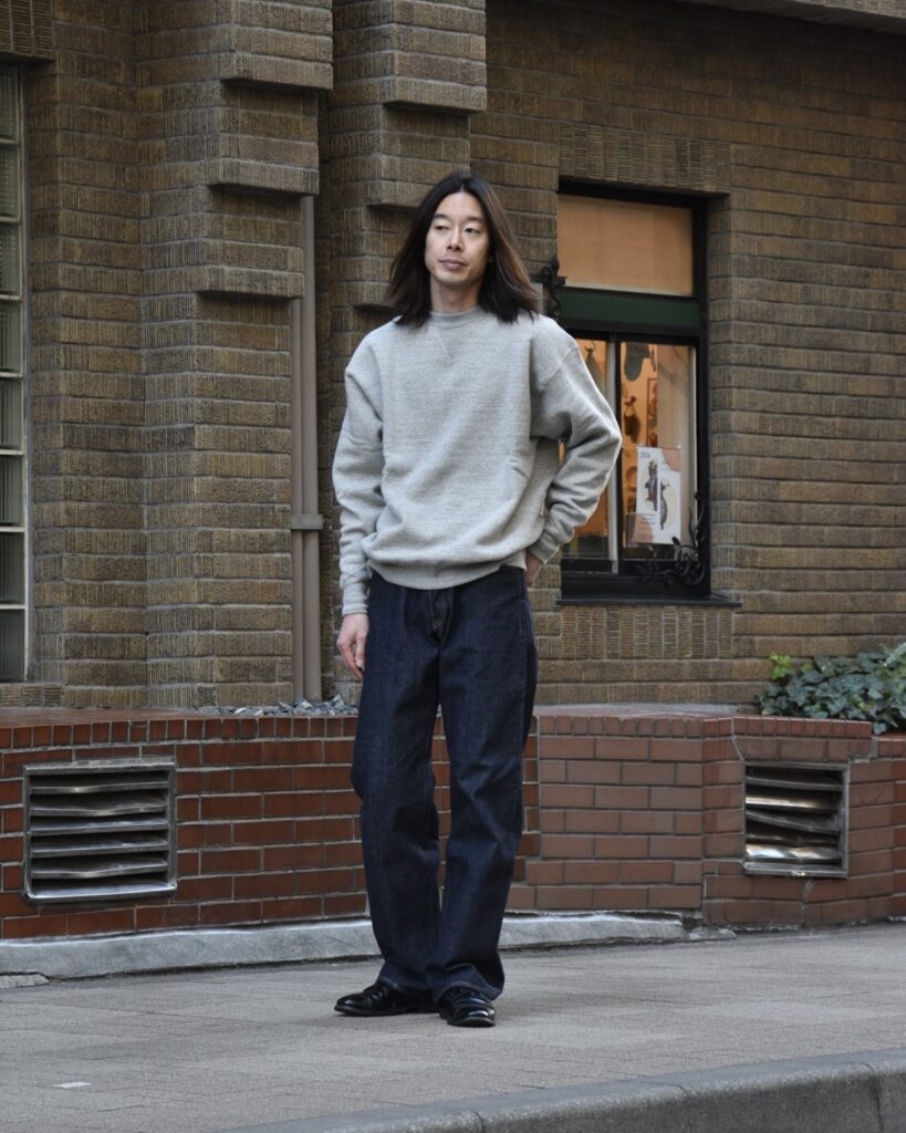 だからボトムスもすこし太めのシルエットを選んでもらうとバランスがちょうどよいカモ!