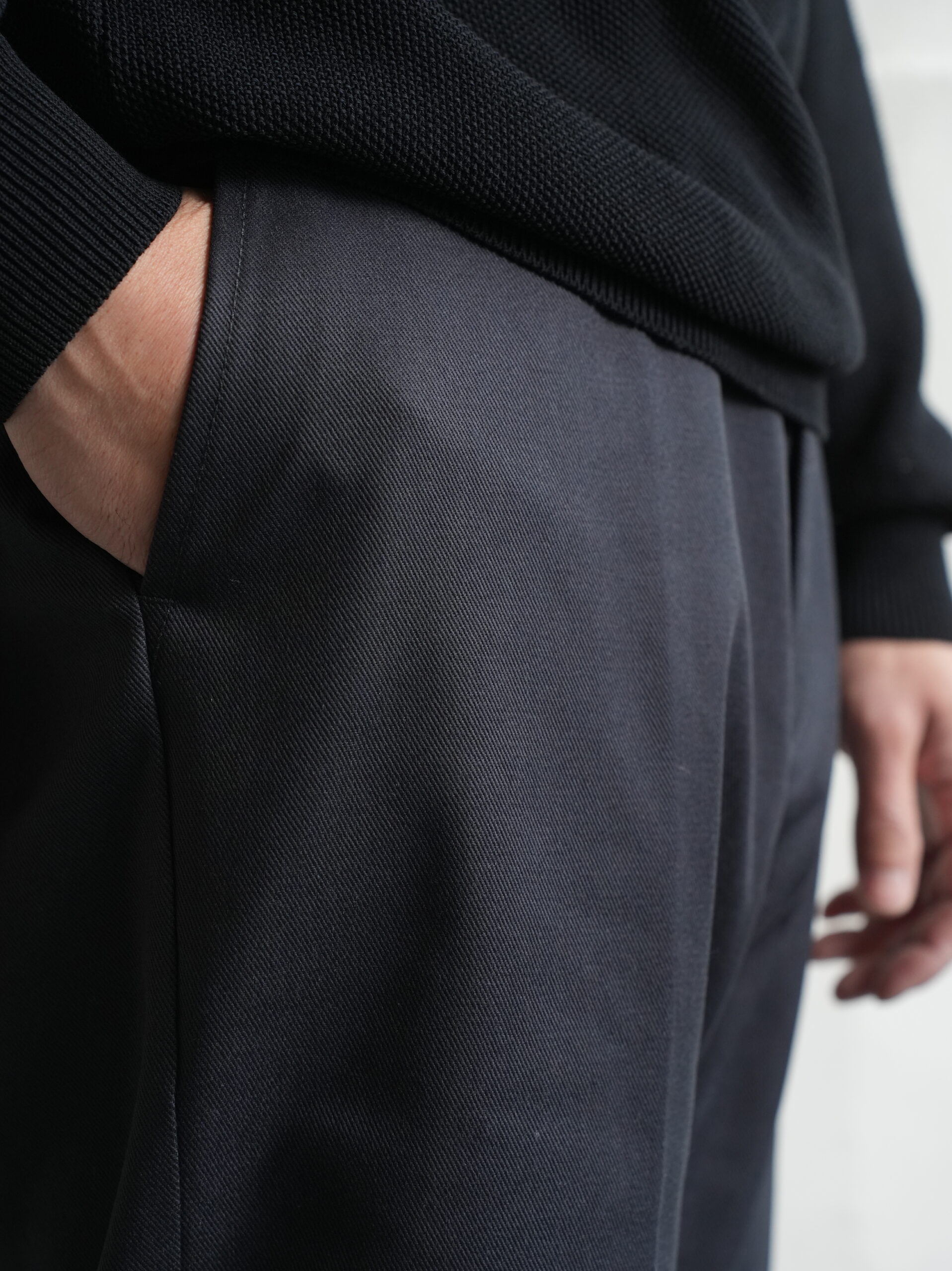 シルエットはゆったり目のストレート。ゆったりとはいっても、広すぎない裾幅と形が大人の方にお召しいただけるバランスに収まっております。