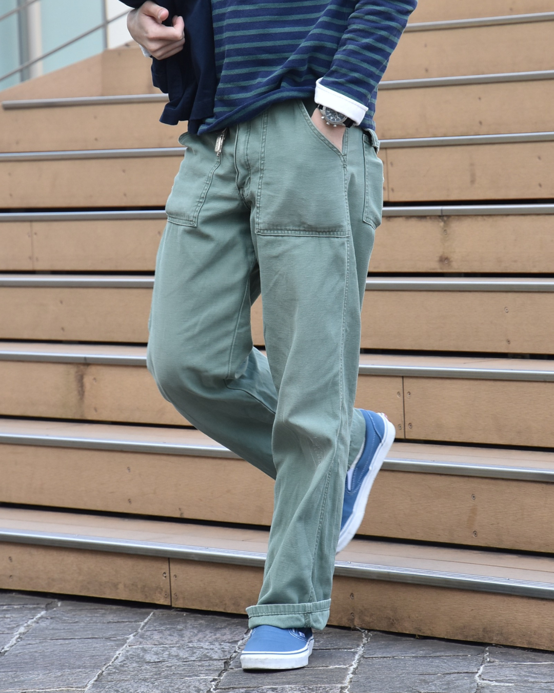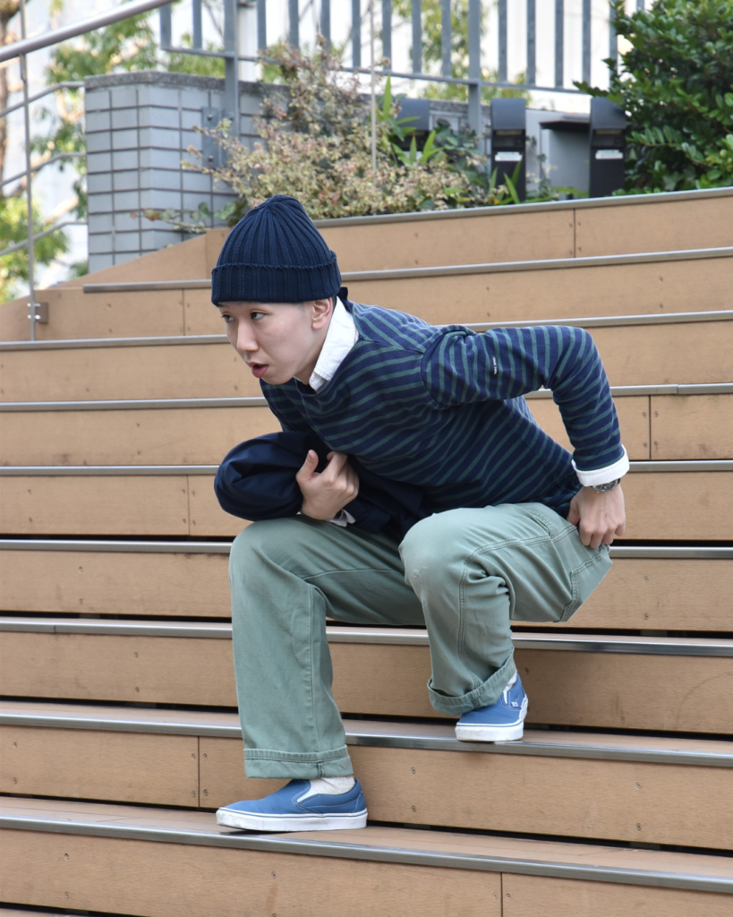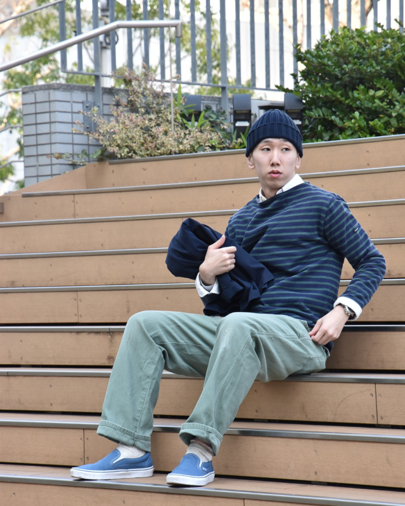春を見据えてシャツオンウエッソンと合わせてました。みんな私物です。