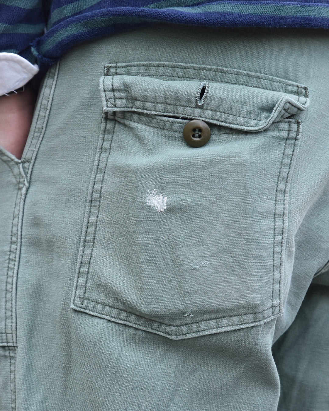 あとは所々ダメージが出ているので、それを縫い目が見えるように、というかわざとらしい感じでリペアしました。本当に使われていた戦闘服みたいでスキなんです。