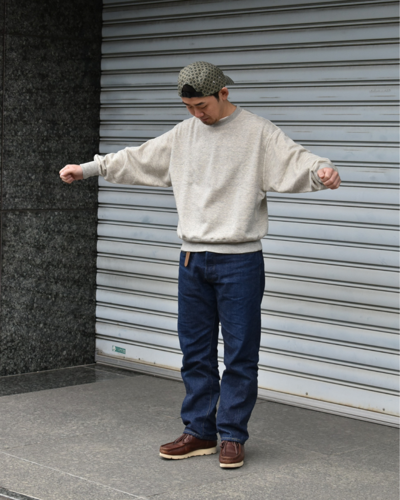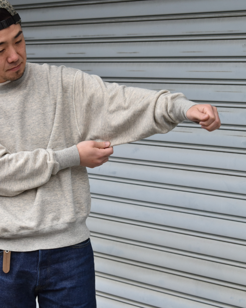 そして旧式の吊り編み機でゆっくりと時間をかけて編み上げたスウェット生地。