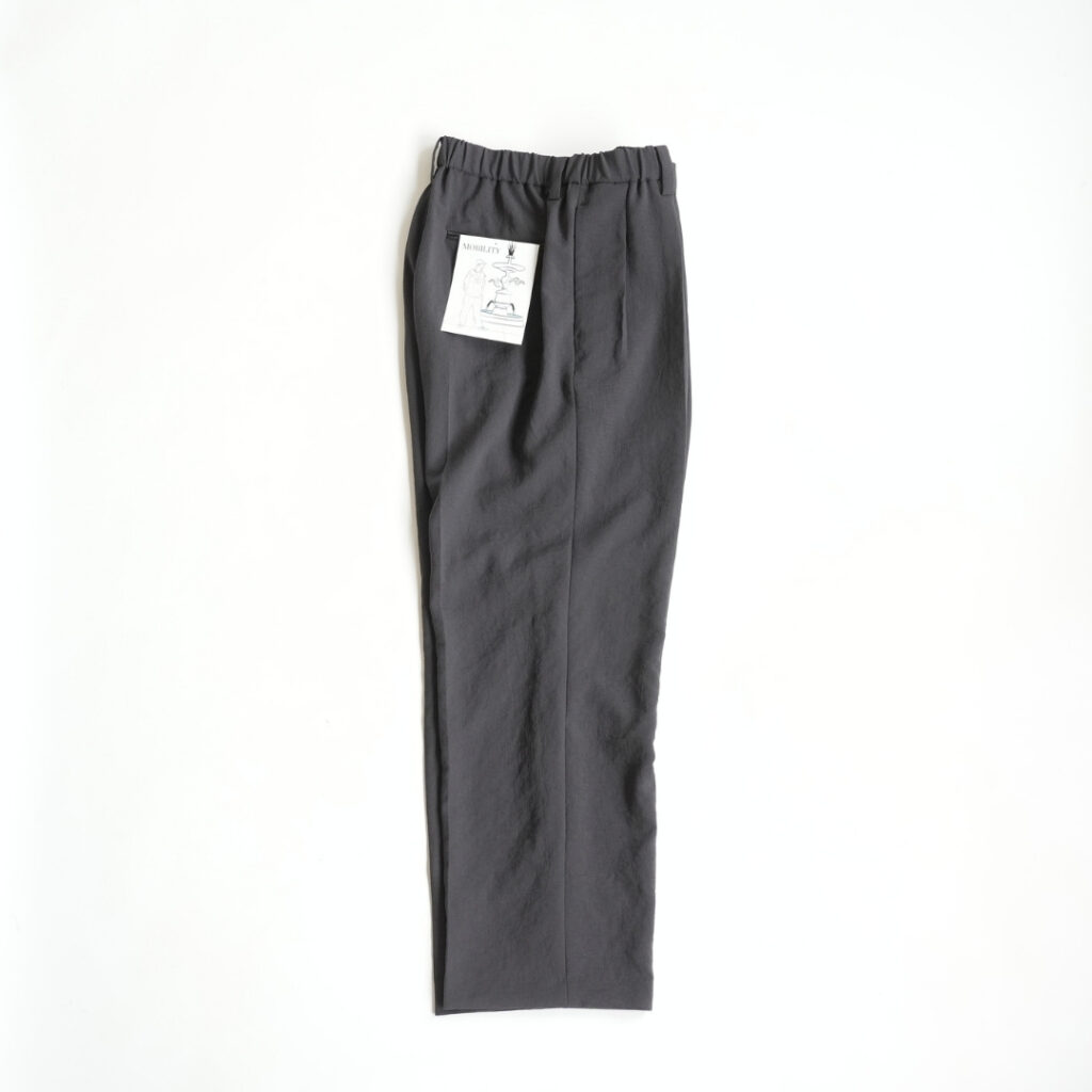 MOBILITYは快適さとシルエットの美しさを兼ね備えたセミワイドのイージーパンツ。休みの日のリラックスしたい時に良し、ちょっとした余所行きにも良し。