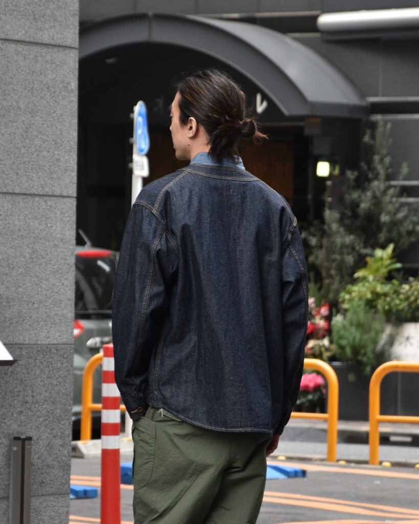 シャンブレーシャツにオリーブのファティーグ。ベーシックな合わせながら、程よく力が抜けたバランスとなり街着としても活用しやすいかと思います。