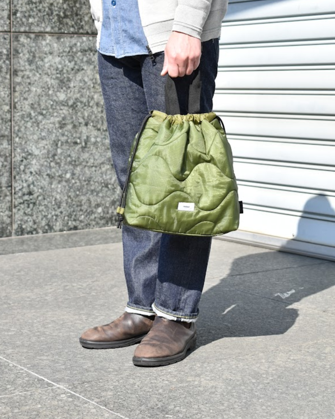 こちらは2サイズからお選びいただける巾着型のバッグでございます。