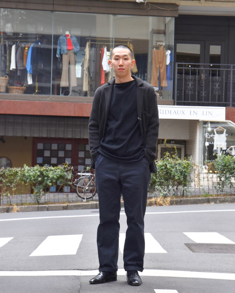 まず目を惹くのはこの色合い。黒系なんだけれども重たくない。どこか青みを感じるような、他のグレーとは異なる色合い。それでいて、合わせやすい。