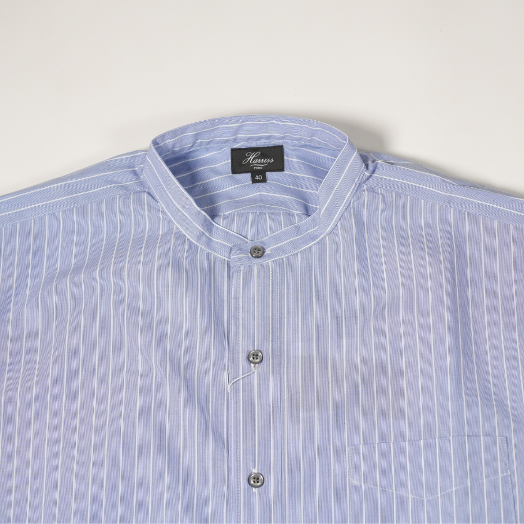 ハリスお馴染みのバンドカラーでスッキリと知的な印象の首回り。