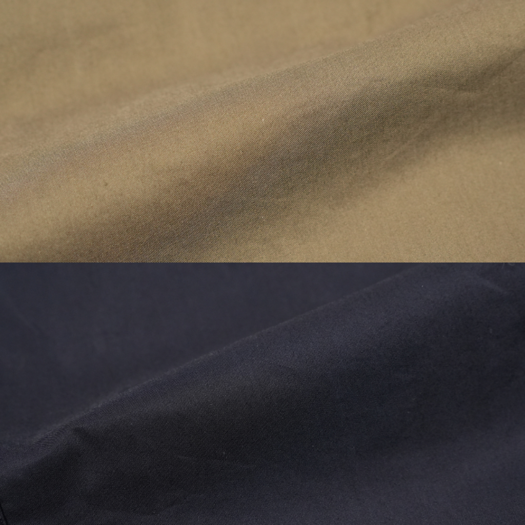 70番手の糸を使ってハリのある風合いですが、ちょっと自然なシワ感が程好く抜け感も感じさせるところ。