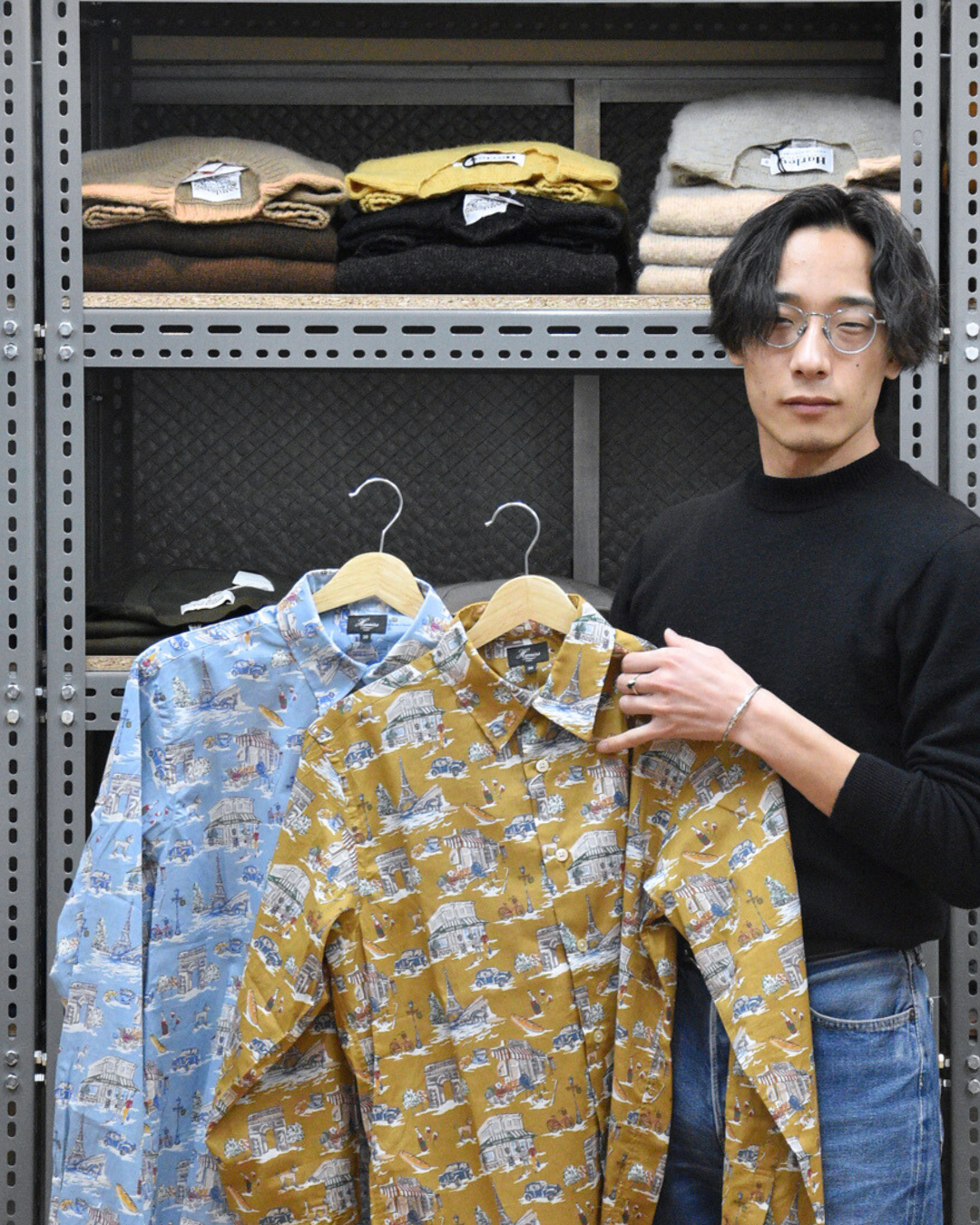 レギュラーカラーシャツ パリ柄
