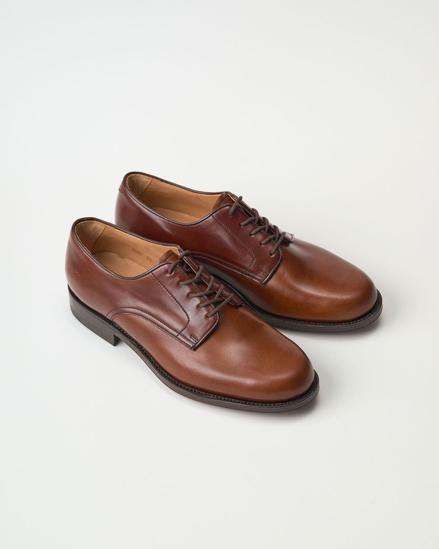 イタリアのILCEA(イルチア)社、RADICA(ラディカ)というミュージアムカーフを使用しています。ミュージアムカーフとはムラ染め仕上げされた革のこと。RADICAはミュージアムカーフの中でも、控えめなムラとなめらかな質感が特徴です。柔らかい革なので足当たりはソフト、履き込むことで更に味わい深い表情にエイジングします。ライニングには、ORIENTALオリジナルレザーを使用。柔らかく仕上げたこのレザーは足当たりと馴染みの良さに寄与しています。ソールはシングルのレザーソール。返りをつきやすくする為に柔軟性の高い素材を選びました。