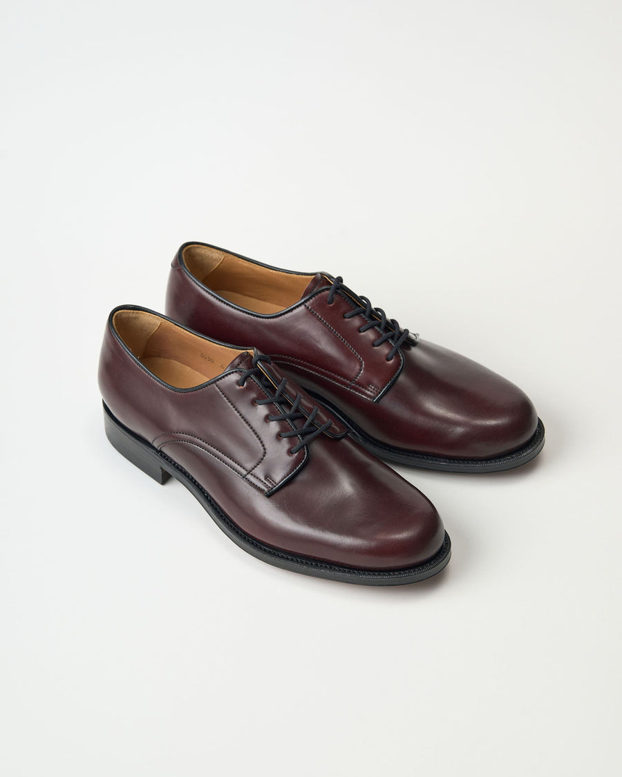 イタリアのILCEA(イルチア)社、RADICA(ラディカ)というミュージアムカーフを使用しています。ミュージアムカーフとはムラ染め仕上げされた革のこと。RADICAはミュージアムカーフの中でも、控えめなムラとなめらかな質感が特徴です。柔らかい革なので足当たりはソフト、履き込むことで更に味わい深い表情にエイジングします。ライニングには、ORIENTALオリジナルレザーを使用。柔らかく仕上げたこのレザーは足当たりと馴染みの良さに寄与しています。ソールはシングルのレザーソール。返りをつきやすくする為に柔軟性の高い素材を選びました。