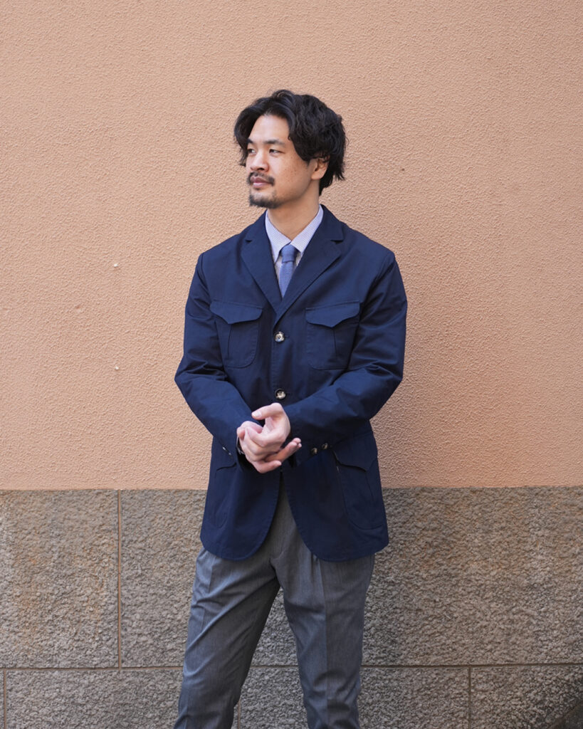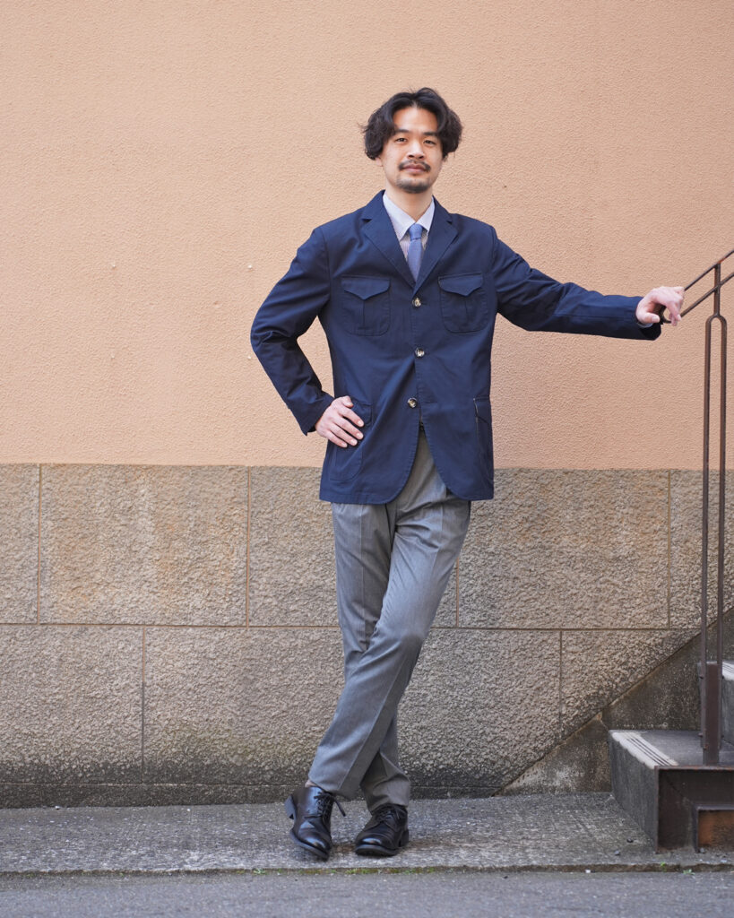 きちんとらしさは残しながらも、よりテーラード寄りの作りに仕立てたこちらは、これからの季節の出番が増える事間違いないでしょう。