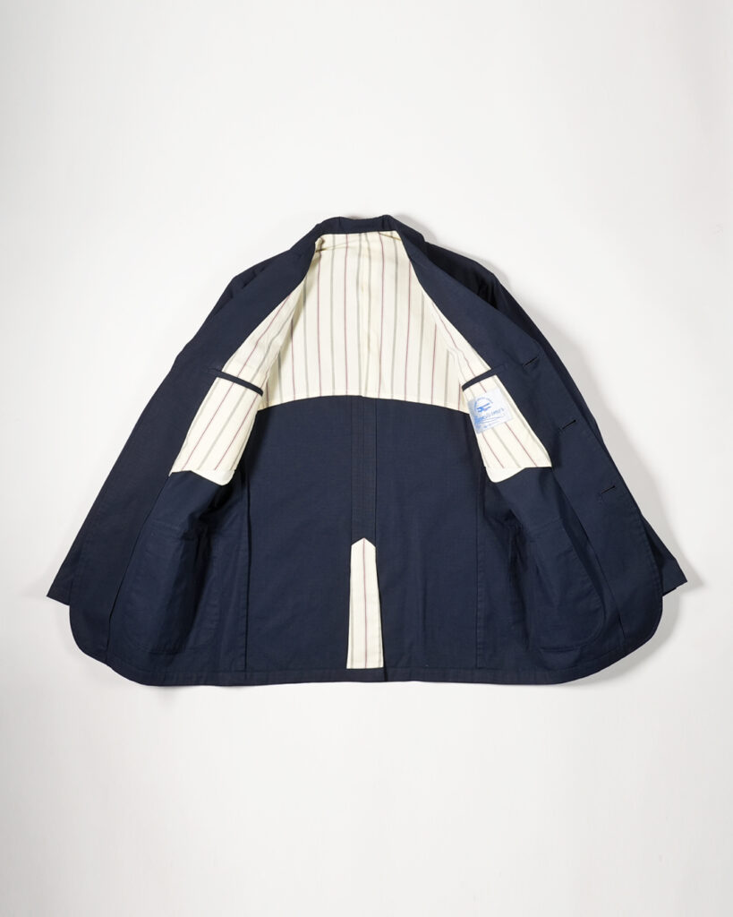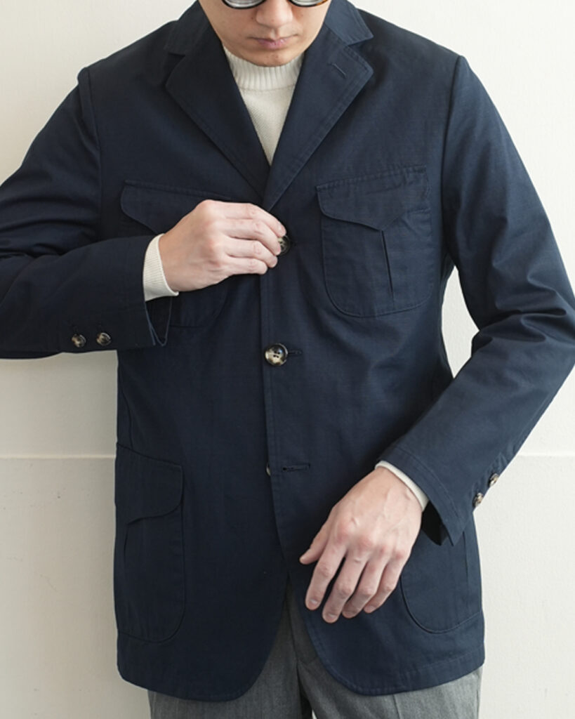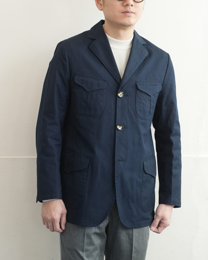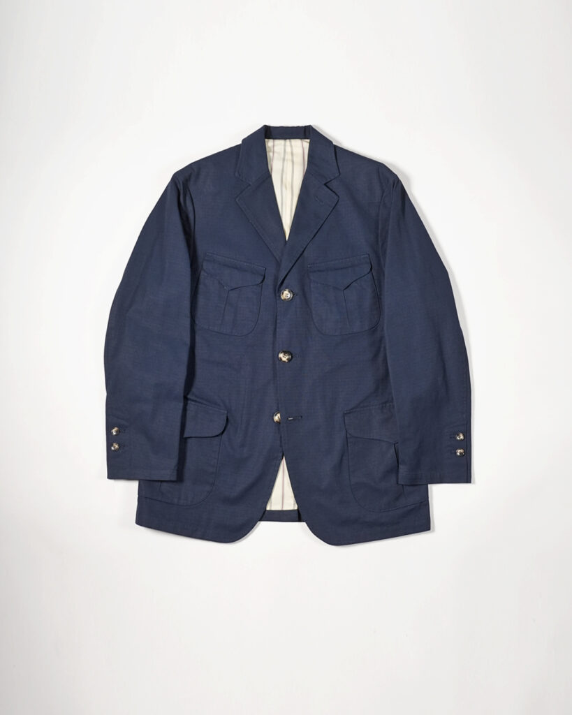 バーンストーマーが手掛けるこちらはアメトラの紺ブレからの着想で、サファリポケットを採用したブレザータイプ。フロントの4つポケットが特徴的で、ヘミングウェイが愛用したサファリジャケットとアメリカのブレザーを足したようなデザインがなんとも男前。