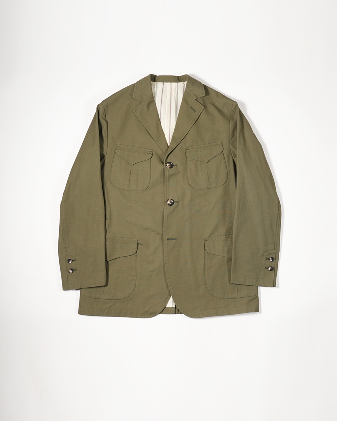 バーンストーマーが手掛けるこちらはアメトラの紺ブレからの着想で、サファリポケットを採用したブレザータイプ。フロントの4つポケットが特徴的で、ヘミングウェイが愛用したサファリジャケットとアメリカのブレザーを足したようなデザインがなんとも男前。