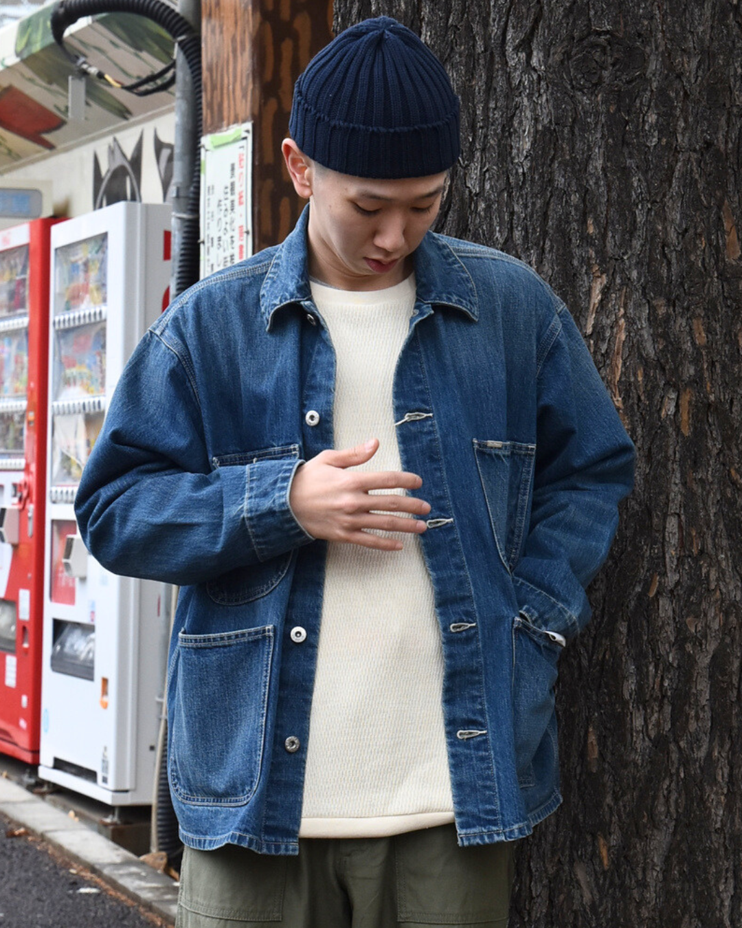 着丈も長すぎないので、ワイドパンツでも、細身でもバランス取りやすい。デニムアウターって着回しが効くなあと思います。個人的には濃い目のインディゴブルーはオリーブや生成りなどのアースカラーと合わせて元気よく行きたい気分でさ。