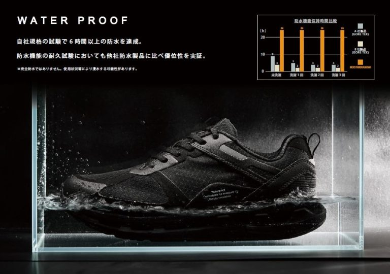 一般の防水靴では防水/透湿防水フィルムを使用してこれを実現していますが、フィルムが介在する故に通気性を損なうことも。