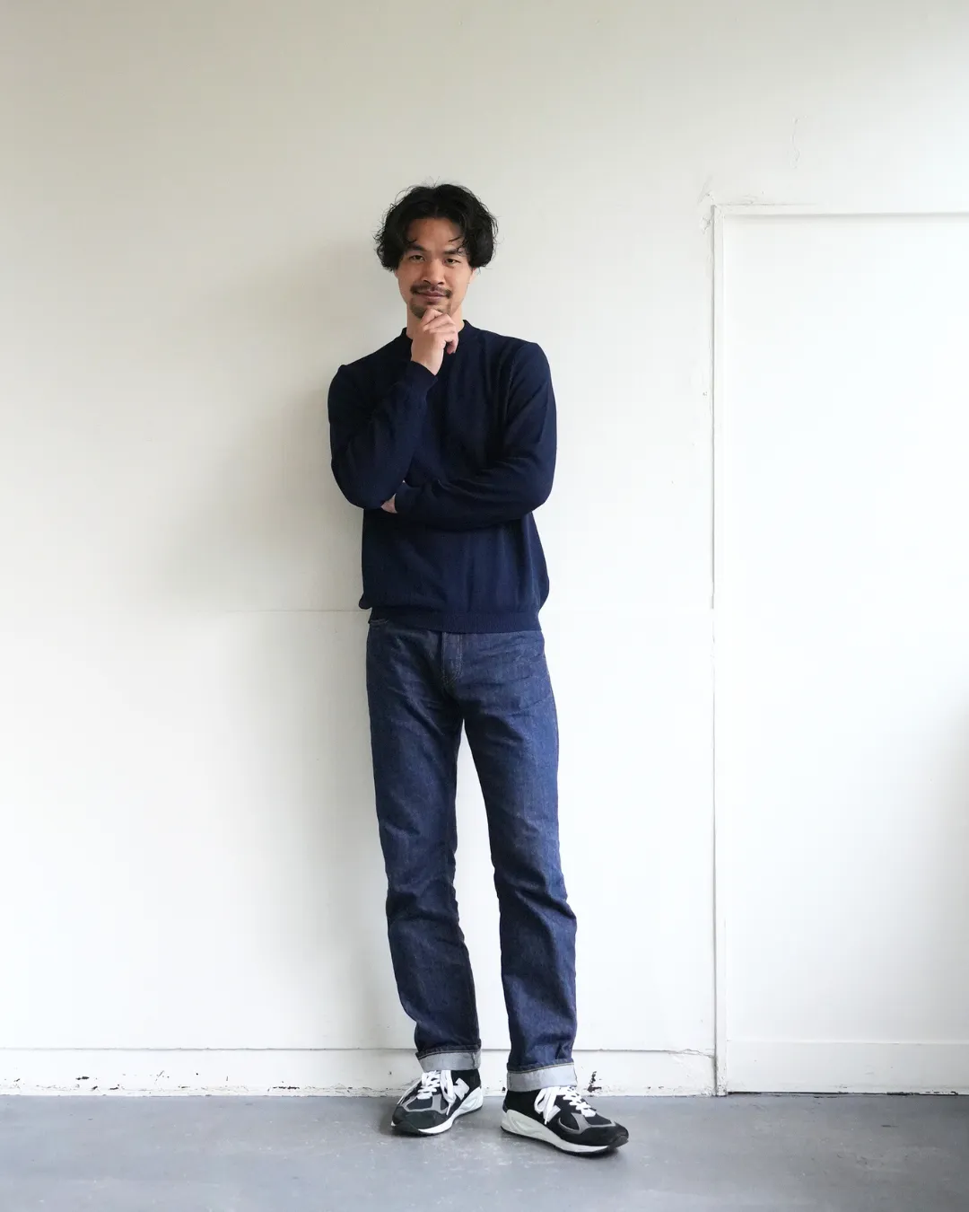 色合わせや差し色なんて事は忘れて、潔く全身ネイビーもいいもんだ。