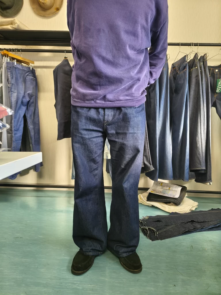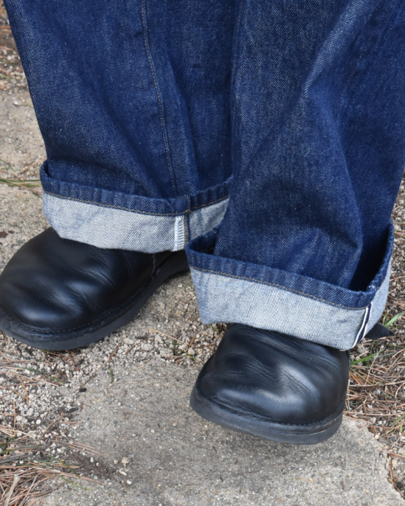 もちろんセルビッジ。生地はカイハラとオーセン協業で生まれた12.5ozの防縮スキュー加工無しです。だんだんよじれるのが楽しみです。