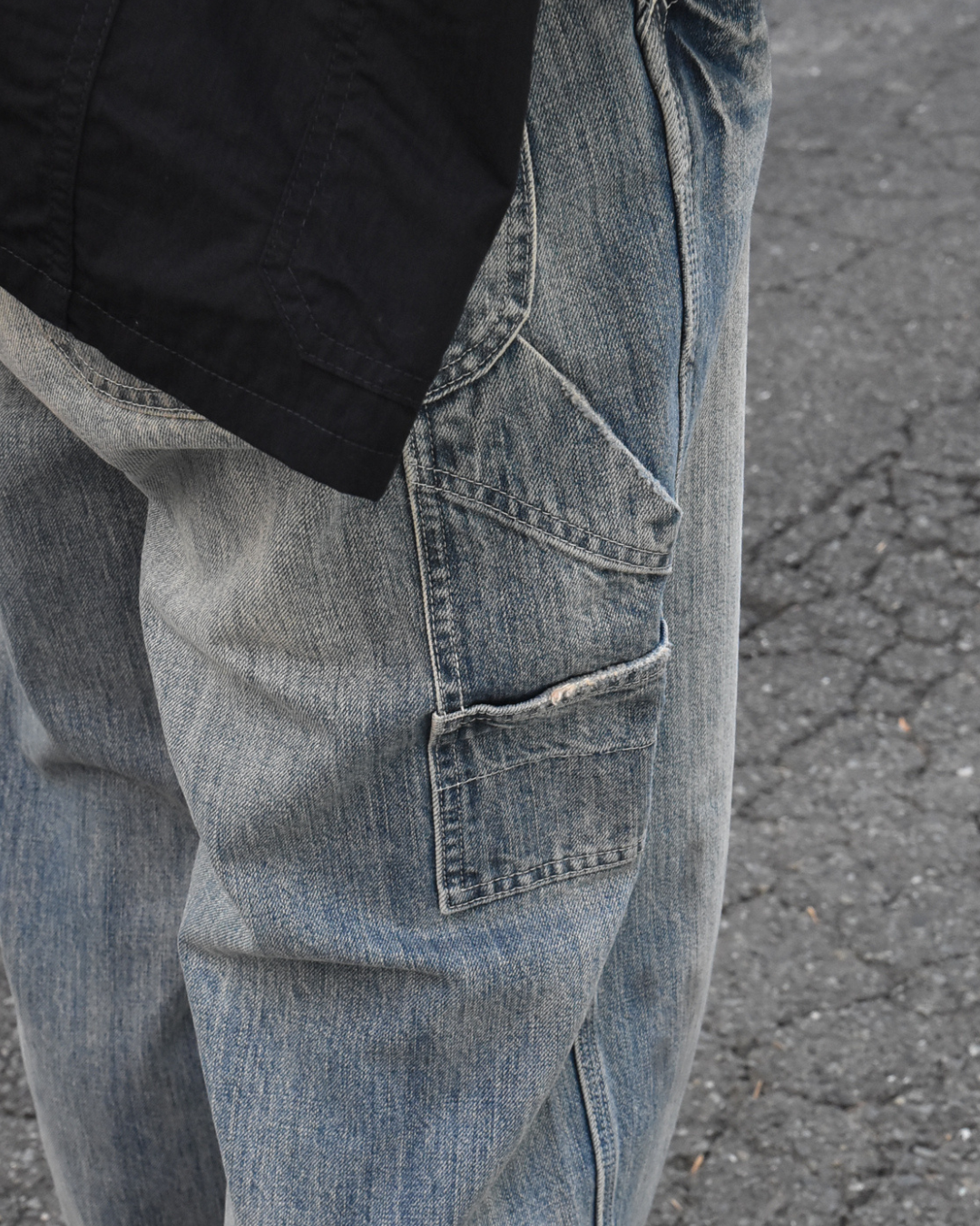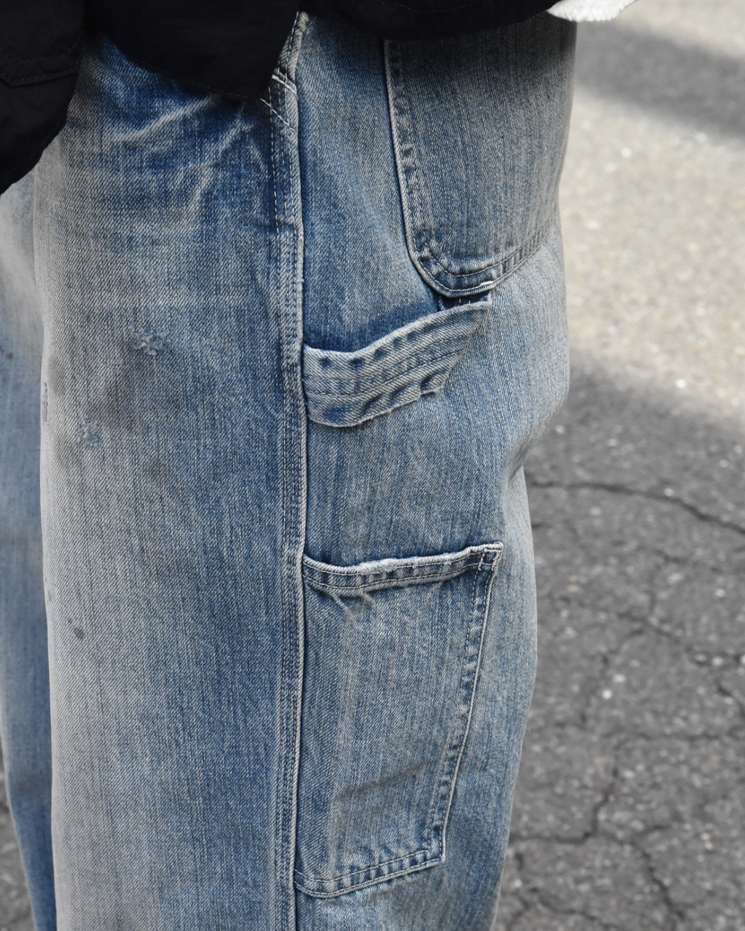 ライトウォッシュのデニムに、自然な色落ちや擦れ感が入った一本。いわゆる育てるデニム、というより、最初から雰囲気が完成しているタイプです。