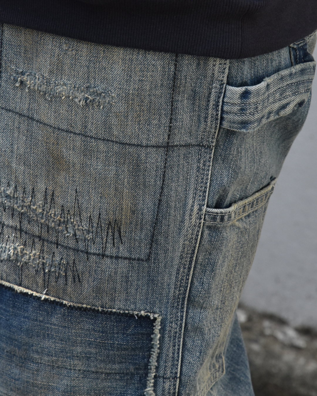 こちらはリメイク感のある加工が特徴。ダメージや色落ちが入った、より存在感のある一本です。